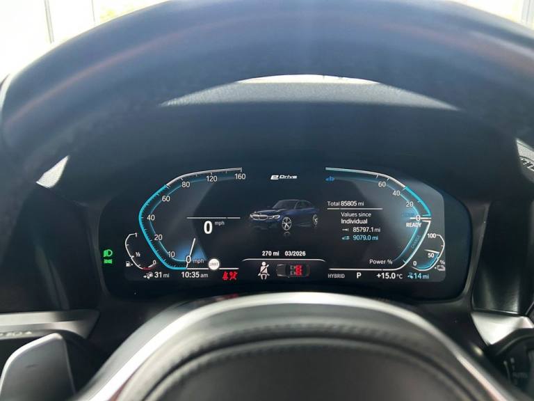 This 2021 BMW 3 Series 330e M Sport Pro Edition is a superb example, boasting a clear vehicle history and having been owned by just one careful keeper. As a four wheel drive, Euro 6 compliant plug in hybrid, it combines a 2.0 litre petrol engine with electric power for an efficient and dynamic driving experience. The M Sport Pro Edition trim signifies a high level of specification, offering a premium feel and enhanced driving dynamics. Experience exhilarating performance with this 330e, capable of accelerating from 0 to 60 miles per hour in a swift 5.8 seconds. This impressive acceleration, coupled with the advanced plug in hybrid technology and four wheel drive system, sets it apart from many other vehicles in its class, offering a compelling blend of power, efficiency, and sophisticated engineering that is characteristic of the BMW 3 Series. Welcome to MotorTrustUK, where exceptional standards and customer satisfaction are at the forefront of our service. All of our retail vehicles undergo a rigorous 128-point mechanical inspection, independently carried out by a qualified AA technician, to ensure the highest level of reliability and safety. Should any vehicle have less than six months remaining on its MOT or be due a service, these requirements will be addressed prior to delivery. For added reassurance, we include a complimentary nationwide warranty with all qualifying vehicles. With approximately 1,500 vehicles currently in group stock, a number that continues to grow, we are pleased to offer part exchange services, accept all major credit and debit cards, and provide flexible finance options, including HP, PCP, and subprime solutions. Nationwide delivery can also be arranged by quotation. While every effort is made to ensure accuracy in vehicle specifications and descriptions, details may vary; we encourage all customers to speak with a member of our sales team to confirm key information such as MPG figures, available keys, or any factory modifications. To ensure smooth processing and support, an administrative fee is applied to all completed sales. We look forward to assisting you in finding your next vehicle with confidence at MotorTrustUK. .12V Power Socket in Front Storage Compartment, 19in Alloy Wheels - Double Spoke Style - 791 M - Jet Black with Mixed Tyres, Acoustic Glazing, Active Air Stream Kidney Grille, Active Guard Plus, Adaptive M Suspension, Air Conditioning - Automatic with Three-Zone, Airbags, Alarm System - Thatcham 1 with Remote Control and Electronic Engine Immobiliser, Ambient Lighting with Welcome Light Carpet, Armrest - Integrated in Door Trim Front and Rear and in Front on the Centre Console, Armrest - Rear Centre with Two Cupholders, Attentiveness Assistant, Tanzanite Blue, Vernasca Leather - Black with Grey Stitching, Automatically Dimming Rear View Mirror, BMW Connected Package Professional, BMW ConnectedDrive Online Services, BMW Emergency Call, BMW Individual High-Gloss Shadowline with Extended Contents, BMW Individual Lights - Shadowline, BMW Live Cockpit Professional, BMW TeleServices, Battery Safety Cut-Off in the Event of an Accident, Bluetooth Hands Free with USB Audio Interface, Brake Pad Wear Indicator - Front and Rear, Bumper System - Front and Rear, Central Locking Switch - Doors - Fuel Filler Cap - Luggage Compartment, Centre Console Rear Storage Compartment - Ventilation Grille, Check Control Warning System for Monitoring of Lights and Door-Luggage Compartment Open Warning, Child Proof Locking System - Rear Doors, Child Seat ISOFIX Attachment - Rear, Crash Sensor, Cruise Control with Brake Function, Cup Holders in Centre Console - Front - 2 Cupholder Inserts with Clamping Elements - Inlay Matt Black, DAB Digital Radio, DSC - Dynamic Stability Control Plus, Deletion Lumbar Support-Width Adjustment Passenger Side, Door Pockets - Front and Rear, Door Sill Finishers - Aluminium Inserts in the Front - Brushed with BMW Designation, Drive Performance Control, Driving Experience Modes, Dynamic Brake Lights, EPS - Electric Power Steering, Electric Windows - Front and Rear, Electro Mechanical Parking Brake, Exhaust Tailpipes - Split Left and Right - 90mm Diameter, Exterior Mirrors - Electrically Folding with Anti Dazzle, Exterior Parts in Body Colour, First Aid Kit and Warning Triangle, Floor Mats - Velour - Front and Rear, Glove Compartment - Illuminated - With Separate Small Compartment, Grab Handles - Integrated in Roof Lining x4, Headlights - Adaptive LED, Headlining - Anthracite, Heat Protection Glazing with Green Tint, Instrument Cluster, Interior Lighting, Interior Trim - BMW Individual Aluminium Fabric High-Gloss, LED Fog Lights - Front, Lashing Eyes in Lugg