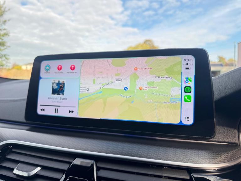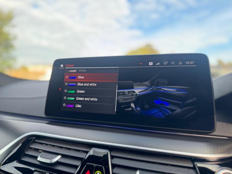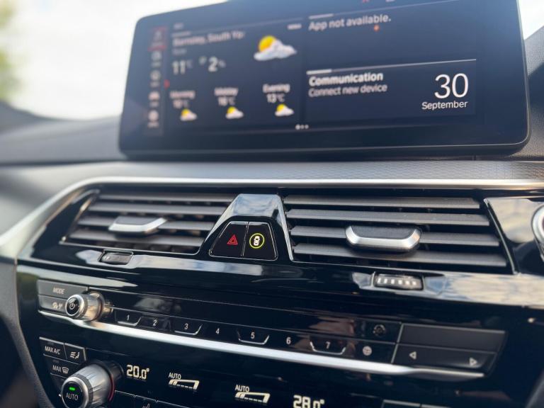 We are pleased to offer this elegant BMW 5 Series 2.0 520i MHT M Sport Steptronic, finished in timeless Alpine White non-metallic with Dakota leather upholstery in black, beautifully accented by blue stitching. This executive saloon blends performance, comfort, and cutting-edge technology in true BMW fashion.Powered by the efficient yet responsive 2.0-litre mild-hybrid petrol engine, paired with BMWs renowned Steptronic automatic transmission, the 520i delivers smooth, refined performance with excellent economy. The M Sport styling package further enhances its presence, giving the car a sportier edge with dynamic design details and athletic stance.Inside, the cabin combines luxury with functionality. The Aluminium Rhombicle with Pearl Chrome interior trim complements the premium Dakota leather seating, with front heated seats providing added comfort. Ambient lighting enhances the interior atmosphere, creating a refined and modern environment for every journey.This 5 Series comes equipped with a wealth of technology to make driving effortless. Highlights include Apple CarPlay for seamless smartphone integration, wireless phone charging, cruise control for relaxed long-distance travel, and a reversing camera with sensors for confident manoeuvring. Sun protection glass adds both comfort and style, reducing glare while enhancing privacy.A perfect combination of executive refinement and M Sport performance, this BMW 520i delivers a premium driving experience with standout specification.