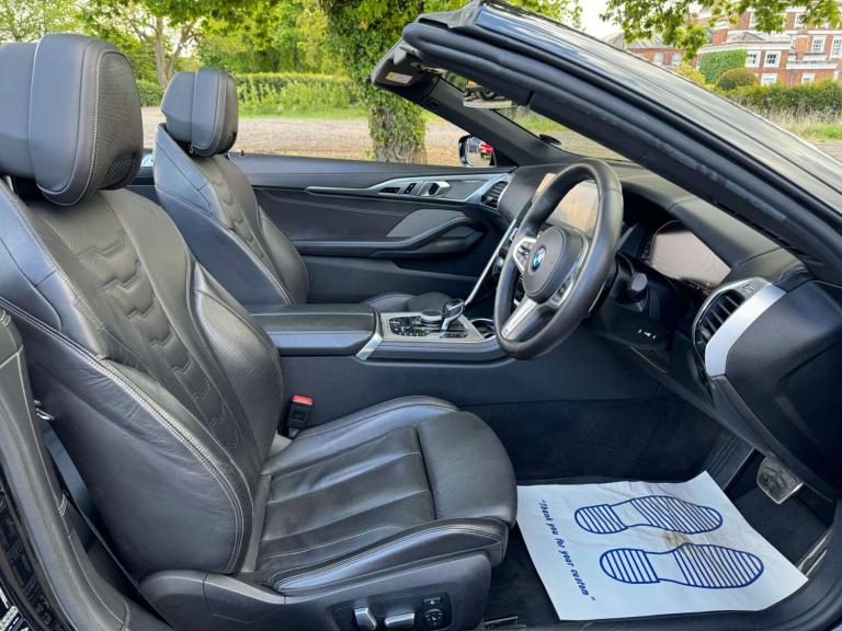 VAT QUALIFYING. NATIONWIDE DELIVERY AND CLICK AND COLLECT Available. Here At Beck Evans We Are Proud To Introduce This Stunning BMW 8 Series 840d M Sport XDrive Convertible, A True Masterpiece Of Engineering and Luxury. With Only One Company Owner From New and Comes With BMW Main Dealer Service History, LOW MILEAGE. This Vehicle Is Finished in Black Sapphire Metallic with Full BMW Individual Extended Merino Black Leather Seats, Electric Adjustable Front Seats with Heating Function, Air Scarf, Harmon Kardon Sound System, Head Up Display, Reversing Camera With Parking Assist Sensors Front and Rear, Satellite Navigation, DAB Radio, Bluetooth, Phone Prep, Dual Zone Automatic Climate Control Air Conditioning, Leather Multifunction Steering Wheel, Automatic Lights, Rain Sensors, Electric Folding Wing Mirrors, Agility Select, Eco Start Stop Function, 20 Inch M Light Y Spoke Alloy Wheels, Adaptive M Suspension, Ambient Lighting, BMW Live Cockpit Professional, Comfort Access System, Cruise Control with Speed Limiter, Dynamic Stability Control, Dynamic Traction Control, Adaptive Modes, Auto Hill Hold, Adaptive LED Headlights, High Beam Assist, Keyless Start, M Aerodynamics Package, M Sport Package, Sport Automatic Transmission, Voice Activated Controls, Isofix Rear Seats, Remote Central Locking, Alarm, this BMW offers a thrilling driving experience like no other. Whether you're cruising down the motorway or navigating through city streets, the 8 Series delivers performance and precision with every drive. Don't miss your chance to own this exceptional BMW 8 Series. Contact us today to schedule a test drive and experience luxury on a whole new level.Additional fees may apply, please note, not all cars are kept on site please call to make appointment and to avoid disappointment. pre delivery check, This vehicle will be sold with the benefit of A Optional 24 MONTH EXTENDED WARRANTY WITH MAIN DEALER LABOUR RATES, charged at an additional 1299. Hpi Checked, Part Exchanges Welcome. Low Rate Finance/PCP Finance Options Available, Over 100 Cars and Up To 50 pictures Available Visit Our Website [Website URL removed] call now Tel: [Phone number removed] USED CAR DEALERS 2022 WINNERS, VAT QUALIFYING, VAT RECLAIMABLE FOR EXPORT AND BUSINESS USE ONLY.