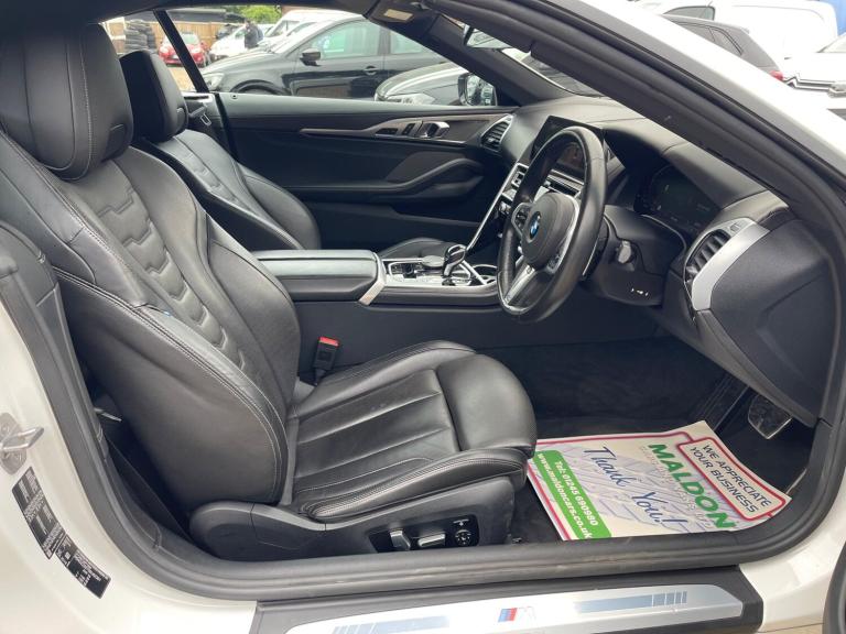 VIEWING STRICTLY BY APPOINTMENT ONLY, Full service history, with its last service completed on 11/7/25 at 5953 miles, and comes with a clear vehicle history check. You'll also benefit from a 6 month warranty and a 12 month MOT provided on purchase, offering peace of mind. The 840i is equipped with a Technology Package featuring adaptive cruise control and a 360 degree camera for effortless parking. It also includes a Visibility Pack with advanced laser headlights, a Premium Package with a heated steering wheel, and enhanced Bluetooth with wireless charging.This BMW 8 Series is designed for performance and practicality. Experience exhilarating acceleration, reaching 0-62mph in a swift 5.3 seconds, a testament to its powerful 3.0L engine. The 20 inch M Light Y-spoke alloy wheels in Jet Black with run-flat tyres add to its striking appearance. Inside, the large boot space ensures you have ample room for luggage or shopping. These features, combined with its incredibly low mileage for a 2021 vehicle, set this 840i apart from others, offering a superior driving and ownership experience.12 MONTHS AA BREAKDOWN COVER, EXPERIAN AUTOCHECK CLEAR, ALL PREV MOTs AVAIL We are located in OAK CORNER, MALDON ROAD, Maldon, Essex post code CM9 6TF Open 7 days a week, All major credit/debit cards accepted for deposits only, Finance available, Please visit our website [Website URL removed] to view our latest stock, Part Exchange Welcome - Test Drives Welcome - We Offer a Transparent, Friendly, 'NO PRESSURE' Service , Read Our Reviews, All our vehicles come with 6 months nationwide parts and labour warranty, MALDON CARS AND VANS LTD are authorised and regulated by the Financial Conduct Authority under FRN Reference number 927720. Finance is Subject to status. MALDON CARS AND VANS LTD is authorised as a CREDIT BROKER and NOT A LENDER.This means we work with a number of carefully selected credit providers who may be able to offer you finance for your purchase
