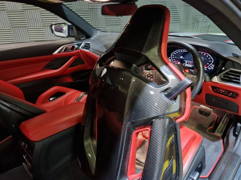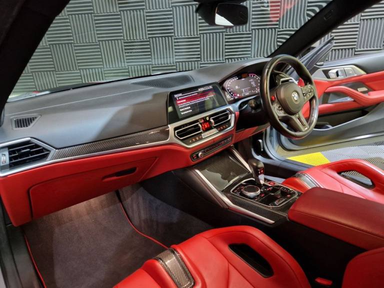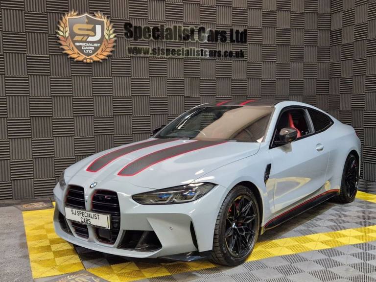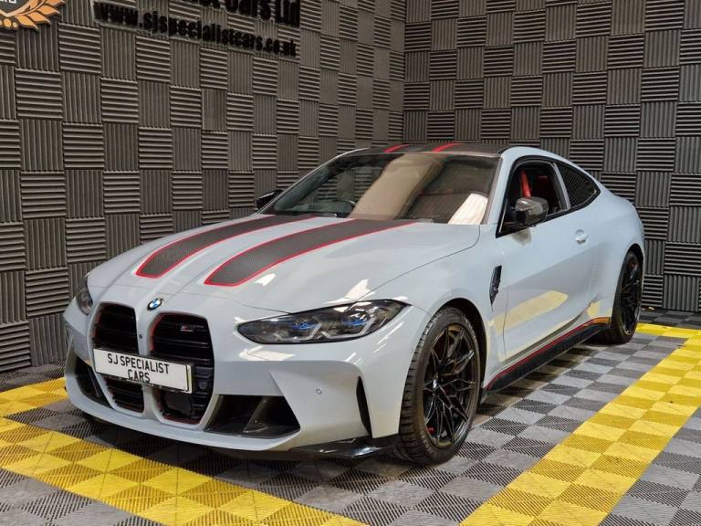 2021 / 71 BMW M4 "Competition" Ultimate Pack, Coupe X Drive. Finished in Brooklyn Grey, with Fiona Red, and Black Individual Leather, 41000 Miles, FSH. Massive Spec (Almost £22K in Factory Options) Inc : ULTIMATE PACK, Carbon Bucket Seats, Factory Carbon Interior Kit, Carbon Mirror Caps, Carbon Exterior Pack, Laser Lights, Visibility Pack, CSL BMW Individual Leather, Stripe Kit (Can Be Removed if Preferred) Black 19" Alloys Staggered, Heated Steering Wheel, Park Assist Plus Pack, Stunning Car in The Best Colour, With A Mammoth Spec ! Car has Just been serviced this week and had a set of £900 RSL 29 brake pads, the best brake pads you will find. All usual dealer facilities available, Warranties, Finance and Part Exchange Available..Ultimate Pack, Carbon buckets, RSL 29 Brake pads, Heated wheel, Just Serviced, 12V Power Socket in Front Centre Console and Blanking Plug, 19in Front - 20in Rear Alloy Wheels - M Double Spoke - 826 - Forged - Jet Black with Mixed Tyres, 8 Programmable Favourite Buttons, ABS - Anti Lock Braking System, AUX-In Connection, Adaptive M Suspension, Air Conditioning - Automatic with Three-Zone, Airbags, Alarm, Ambient Lighting, Automatic Windscreen Wiper and Headlights, BMW ConnectedDrive Online Services, BMW Emergency Call, BMW Gesture Control, BMW Individual High-Gloss Shadowline with Extended Contents, BMW Live Cockpit Professional, BMW Mobility Kit, BMW Shadow Lights, BMW TeleServices, Bottle Holders Integrated into Door Trim Storage Compartments - Front - Up to 1 litre, Bumper System - Front and Rear, Carbon-Fibre Reinforced Plastic - CFRP - Roof, Child Seat ISOFIX Attachment, Compartment in Front of Cupholder, Condition Based Service, Connected Package Professional, Control Display - 10.25in Colour Display Screen, Crash Sensor, Cruise Control with Brake Function, Cup Holders in Front - Two with Clamping Elements, DAB Digital Radio, DSC - Dynamic Stability Control - Stabilises the Vehicle in Extreme Situations - Controls Traction, Diffuser in Black High Gloss, Door Sill Finishers with Aluminium Inserts and Model Inscriptions, Driving Assistant, Dynamic Brake Lights, EPS - Electric Power Steering, Electric Windows - Front and Rear with Open-Close Fingertip Control - Anti-Trap Facility and Comfort Closing Function, Electronic Engine Immobiliser, Extended Storage, Exterior Mirrors - Electrically Folding with Anti Dazzle, Exterior Parts in Body Colour, Exterior Trim - High-Gloss Shadowline, Galvanic Embellisher for Controls, Gearshift Lever with Embossed M Badge, Glove Box, Headlining - Anthracite, High-Beam Assistant, Instrument Cluster with Extended Contents, Interior Lighting, Interior Rear-View Mirror with Automatic Anti-Dazzle Function, Interior Trim - Black High Gloss, Interior Trim - Carbon Fibre, Kidney Grille with Frameless High Gloss and Model Badging, LED Headlights, LED Taillights with New 3D L-Shaped LED Light Design, Language Version English Handbook, Loudspeaker System - Harman Kardon, Lumbar Support - Driver and Front Passenger, M Compound Brake - Red High Gloss, M Designation, M Drive Professional, M Head-Up Display, M Multifunctional Leather Steering Wheel - Three Spoke with Steering Column Adjustments, M Rear Lip Spoiler in High Gloss Black, M