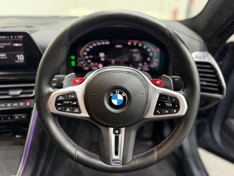Introducing the stunning BMW M8 Competition, a true masterpiece of automotive engineering. With only 29,619 miles on the clock, this luxury vehicle is in impeccable condition.Finished in a striking Blue colour called Frozen Bluestone, this BMW M8 Competition comes loaded with extras to enhance your driving experience. The 20 inch Alloy Wheels - M Light Star-Spoke Style 811 M Bicolour with Mixed Tyres not only look impressive but also provide excellent performance on the road.Step inside the cabin and you'll be greeted by the luxurious Full Merino Leather interior in Black, creating a sophisticated and comfortable environment. The Comfort Plus Package and Technology Plus Pack ensure that every journey is a pleasure, with features such as the Harman Kardon Loudspeaker System, Rear View Camera, and Head Up Display.Experience the power and precision of the M Sport Exhaust System, M Sport Differential, and M Seat Belts, designed to deliver an exhilarating driving experience. The Adaptive LED Headlights illuminate the road ahead, while the Frozen Bluestone finish adds a touch of exclusivity to this already exceptional vehicle.Finance from 8.9% APR Representative and Nationwide Delivery available. All of our vehicles are Supplied with a minimum 1/4 a tank of fuel, a 7 Day Money Back Guarantee*, a Full Multi-Point Mechanical inspection, a 6 Month Warranty, a Professional Valet and all vehicles come HPI clear so you can Buy with Confidence. *PLEASE UNDERSTAND every effort has been made to ensure the accuracy of the information above, however, errors may occur. Please do not rely entirely on this information and check with your sales executive about items that may affect your decision to purchase. *Our 7 day money back guarantee is available on selected retail vehicles, please confirm with your sales advisor. *A £299 Admin fee applies to third party external finance companies being used. All vehicle video tours are available upon request. Appointment basis only.