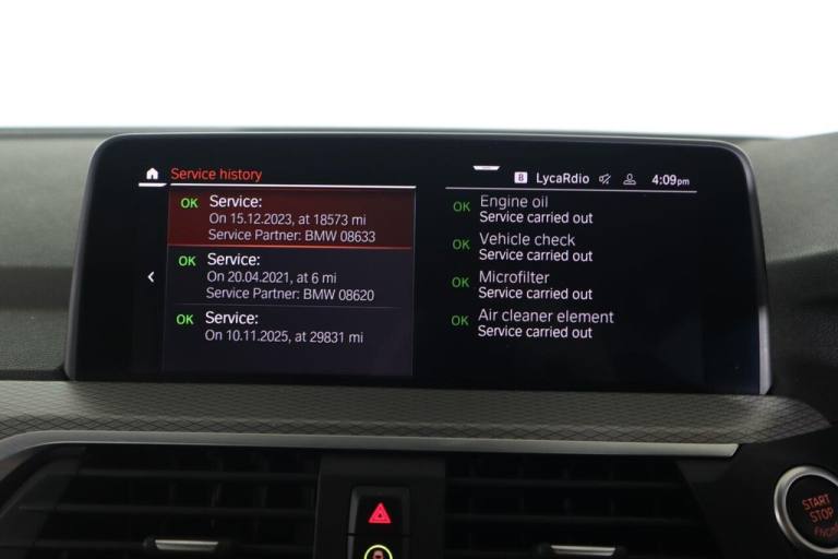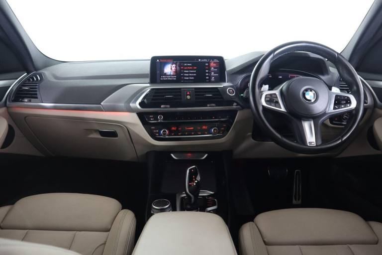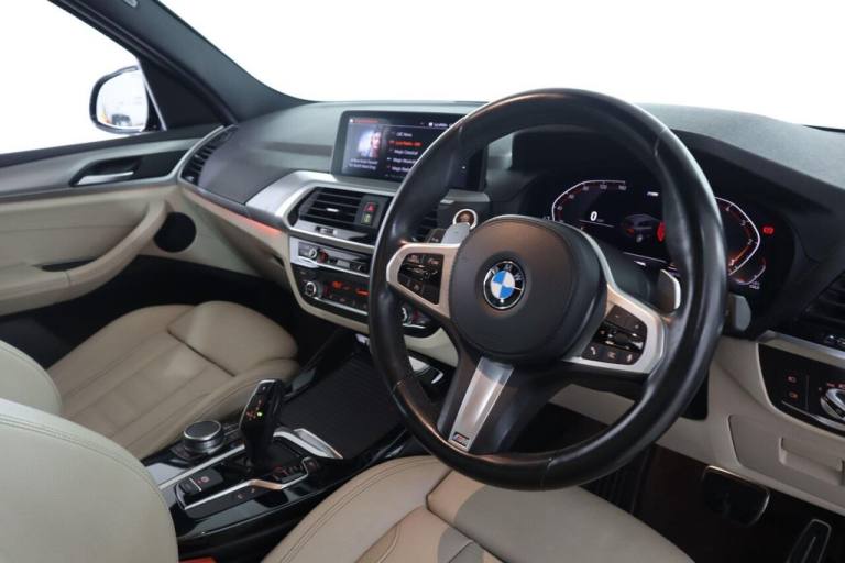 This 2021 BMW X3 20d M Sport presents an exceptional ownership proposition with a mere 30,629 miles on the clock and a single previous owner. This Euro 6 compliant, four wheel drive model boasts a 2.0 litre diesel hybrid engine, offering a compelling blend of performance and efficiency. Inside, youll find automatic air conditioning with climate control, Bluetooth hands free with USB audio interface, and a rain sensor that automatically activates the headlights. Parking is made simpler with a reversing assist camera and front and rear park distance control sensors. The X3 20d M Sport stands out with its impressive fuel economy, achieving 47 miles per gallon, and its low CO2 emissions, making it a more environmentally conscious choice. The generous boot space ensures practicality for all your needs, whether for daily errands or longer journeys. These highlights demonstrate how this particular X3 offers a superior experience compared to other vehicles in its class..12V Power Socket in Front Centre Console, Acoustic Glazing, Active Guard, Adaptive LED Headlights, Air Conditioning - Automatic, Airbags, Alarm System - Thatcham 1 with Remote Control and Engine Immobiliser, Ambient Lighting, Armrest - Front with Storage Compartment, Armrest - Rear Centre with Two Cupholders, Attentiveness Assistant, BMW Connected Package Professional, BMW ConnectedDrive Online Services, BMW Emergency Call, BMW Live Cockpit Professional, BMW Professional Navigation with 10.25in Touch Display, BMW TeleServices, Battery Safety Cut Off, Bluetooth Hands Free with USB Audio Interface, Bottle Holders Integrated into Door Trim Storage Compartments - Front - up to 1 litre - Rear - Up to 750ml, Brake Pad Wear Indicator - Front and Rear, Bumper System Front and Rear - Replaceable Deformation Elements for Impacts Up to 9mph, Central Locking Switch - Doors - Fuel Filler Cap - Luggage Compartment, Check Control Warning System for Monitoring of Lights and Door-Luggage Compartment Open Warning, Child Locking System - Rear Doors, Child Seat ISOFIX Attachment - Rear, Condition Based Service, Crash Sensor, Cruise Control with Brake and Speed Limiting Function, Cup Holders - Front - Two with Removable Oddments Tray-Lid, DAB Digital Radio, DSC - Dynamic Stability Control Plus, Direction Indicator - Side Repeaters - Integrated in Exterior Mirrors, Door Sill Finishers - Front - High-Gloss Black with BMW Designation, Drive Performance Control with ECO PRO - Comfort and Sport Modes, Dynamic Brake Lights, EPS - Electric Power Steering, Electric Windows - Front and Rear with Open-Close Fingertip Control - Anti-Trap Facility and Comfort Closing Function, Electro Mechanical Parking Brake, Exhaust Tailpipe - Chrome - Dual - Round - Split - Left and Right, Exterior B Pillar - Black, Exterior Mirrors - Electrically Folding with Anti Dazzle, Exterior Parts in Body Colour, Exterior Trim - High-Gloss Shadowline, First Aid Kit and Warning Triangle, Gear Knob - Leather, Grab Handles - Integrated in Roof Lining x4, Headlining - Anthracite, Heat Protection Glazing with Green Tint, Heated Seats for Driver and Front Passenger, Heated Windscreen Washer Jets, High Level Third Brake Light Using LED Technology, Incorrect Fuelling Protection System, Instrument Cluster, Interior Lighting, Interior Rear-View Mirror with Automatic Anti-Dazzle Function, Interior Trim - Aluminium Rhombicle with Highlight Trim Finishers Pearl Chrome, Kidney Grille - Chrome with Black High-Gloss Vertical Sl