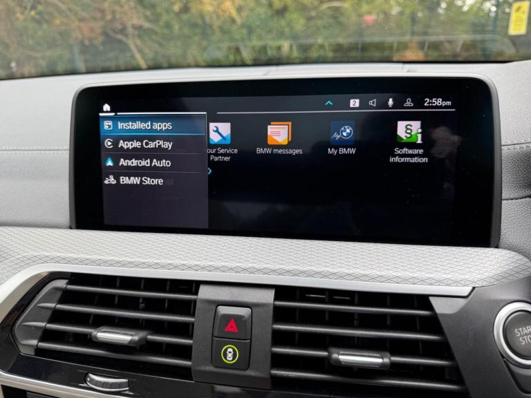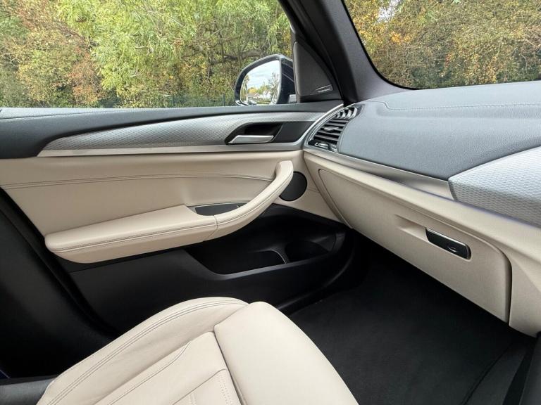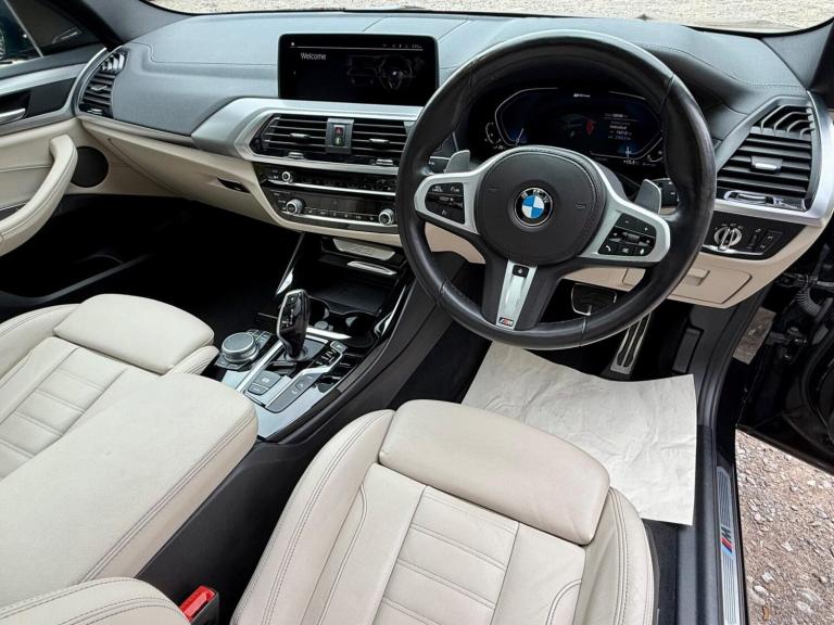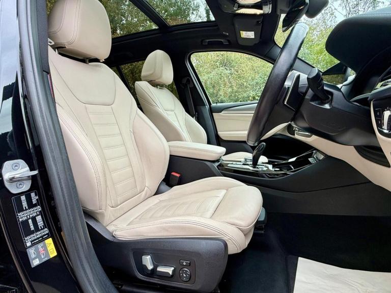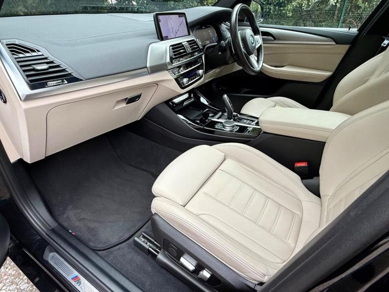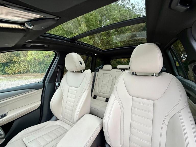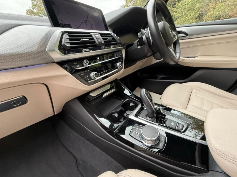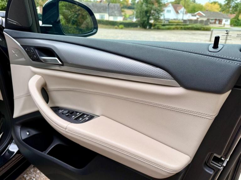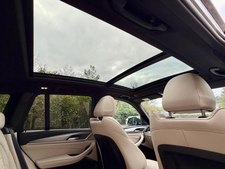 PANORAMIC SUNROOF+VERNASCO OYSTER LEATHER+HEAP UP DISPLAY+ADAPTIVE SUSPENSION+HEATED STEERING+HARMON KARDON+GESTURE CONTROL+20'' ALLOYS+ELECTRIC MEMORY HEATED SEATS+SUN PROTECTION GLASS+POWER BOOT+COMFORT ACCESS+LUMBAR SUPPORT+INSTRUMENT PANEL IN SENSATEC+ENHANCED BLUETOOTH WITH WIRELESS CHARGING+EXTENDED STORAGE+COMFORT PLUS PACK+TECHNOLOGY PACK+M SPORT PLUS PACK+VISIBILITY PACK+MASSIVE SPEC AND VAT QUALIFYING+FINANCE FROM 8.9% APR. This 2021 BMW X3 30e M Sport is a superb example, having had only one owner since new. This impressive plug in hybrid SUV boasts a 2.0 litre petrol engine paired with four wheel drive, ensuring both efficiency and capability. It meets Euro 6 emissions standards. The M Sport trim enhances its sporty appeal, and it comes equipped with the desirable Comfort Plus Package, featuring keyless entry, memory seats, and a heated steering wheel for ultimate convenience. Further enhancing the driving experience are the panoramic glass sunroof, the Technology Package with a head up display, and a premium Harman Kardon loudspeaker system. The Visibility Package includes LED headlights for excellent illumination. Experience exhilarating performance with this X3, capable of accelerating from 0 to 62 miles per hour in just 6.1 seconds. This impressive acceleration, combined with its plug in hybrid technology, sets it apart from many other vehicles in its class. The inclusion of features like the head up display and the advanced Harman Kardon sound system demonstrate a higher level of refinement and driver focused technology, offering a truly premium driving experience.