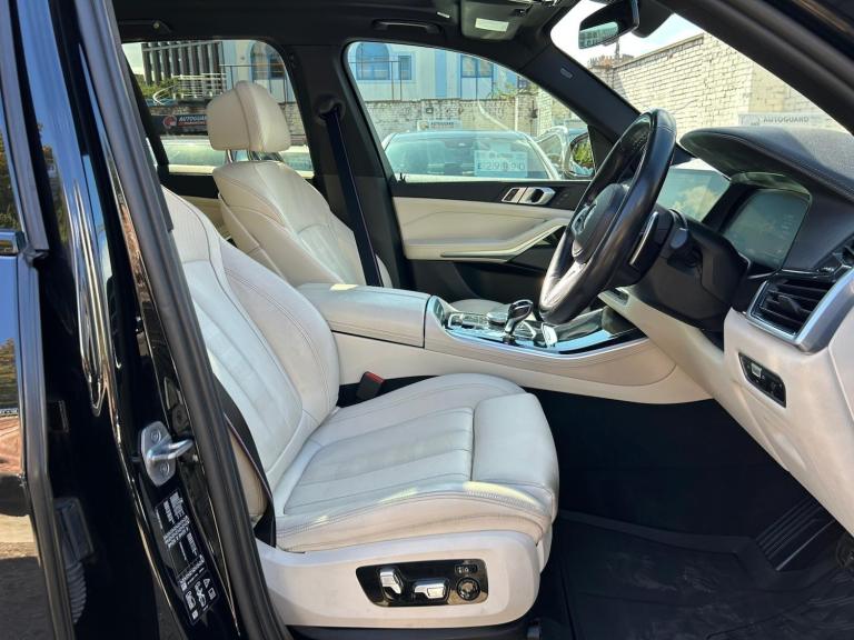 Sky Lounge panoramic glass sunroof22 M light alloy wheels Double-spoke style 742 M Bicolour with mixed tyresInterior trim, BMW Individual interior trim, Piano BlackSun protection glazingHeat comfort package, frontActive ProtectionBlack Sapphire MetallicComfort access with smart openerComfort seats, frontHead-up DisplayHeated & Cooled CupholderHigh-beam AssistantLeather Vernasca design-perforated - Ivory White/BlackLoudspeaker system - harman/kardonM SeatbeltsM Sport exhaust systemParking Assistant PlusSeat heating for seats, rearTyre repair Kit This 2021 BMW X5 30d M Sport is a superb example of a premium all wheel drive SUV, boasting a powerful yet efficient 3.0 litre diesel hybrid engine. Finished in the desirable M Sport trim, this Euro 6 compliant vehicle offers impressive performance, accelerating from 0 to 62mph in just 6.1 seconds. It comes equipped with a host of desirable features, including striking 22 inch M Light Double Spoke Style 742 M Bicolour alloy wheels with mixed tyres. The Technology Package enhances your driving experience with a Head Up Display, while the Comfort Package adds convenience through keyless entry, heated seats, memory seats, and a heated steering wheel. Further elevating the cabin experience is the Sky Lounge Panoramic Glass Sunroof, offering an opening panoramic roof.This BMW X5 also excels in practicality, featuring a generous boot space that makes it ideal for families and adventurers alike. The Parking Assistant Plus system, complete with a 360 degree camera and front and rear parking sensors, ensures effortless manoeuvring in any situation. Furthermore, its placement in a low insurance group indicates that running costs are surprisingly accessible for a vehicle of this calibre, making it a compelling choice when compared to similar models.