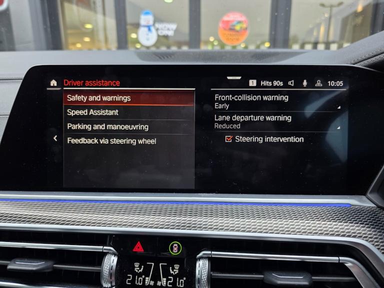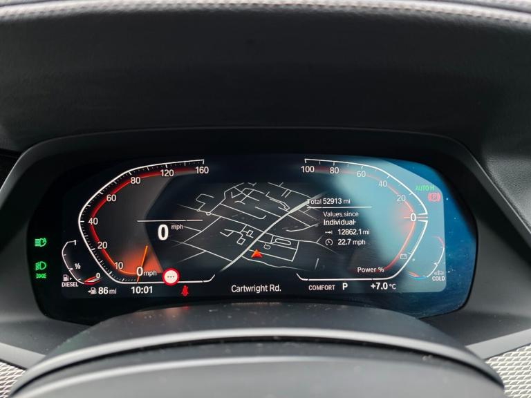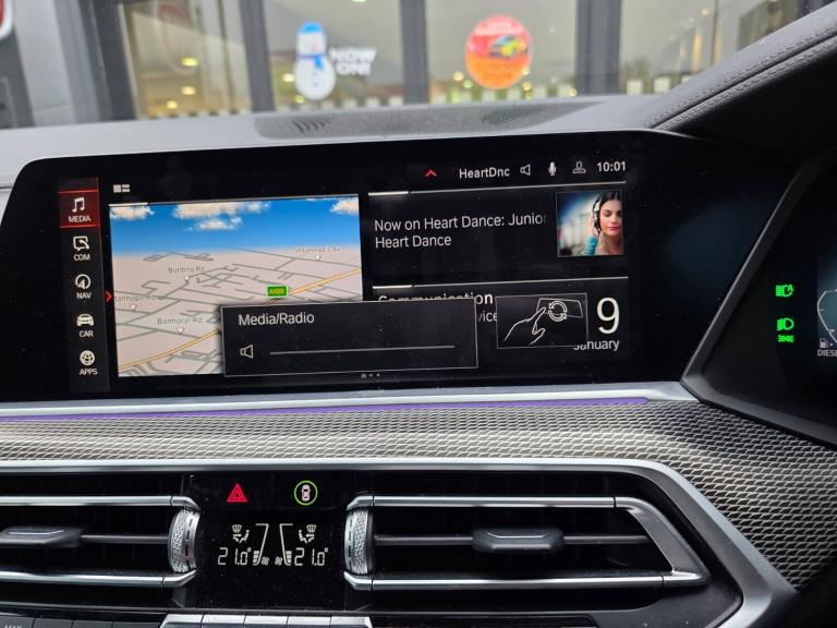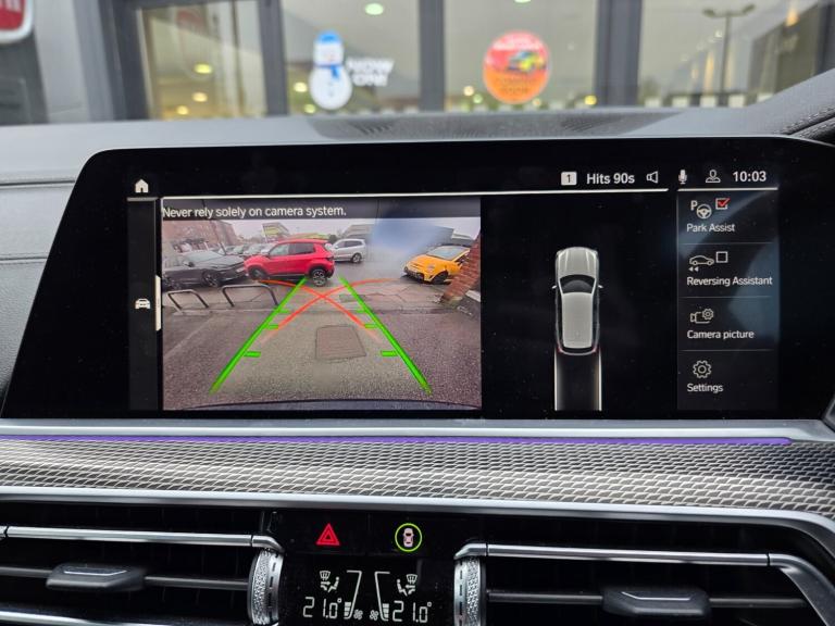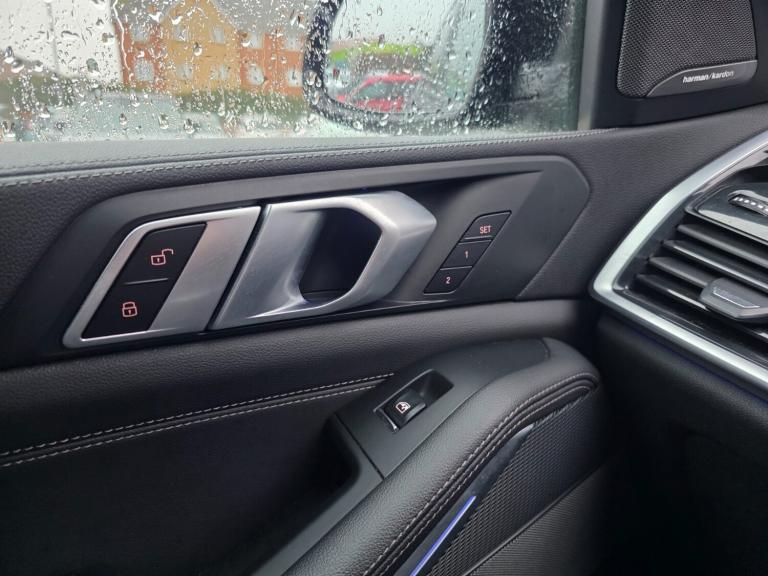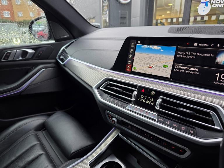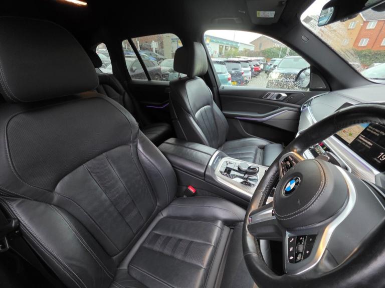This 2021 BMW X5 30d M Sport offers a compelling blend of performance and practicality, boasting a powerful 3.0L Diesel Hybrid engine and a sophisticated Four Wheel Drive system. As a Euro 6 compliant vehicle, it meets stringent emission standards. This M Sport trim level comes equipped with a host of desirable features, including versatile Third Row Seating, a comprehensive Technology Package featuring a Head Up Display, and the M Sport Pro Package for enhanced driving dynamics. Further enhancing its appeal are the Luggage Compartment Package for convenient storage and striking 21 inch M Light Y Spoke Style 741 M Bicolour Alloy Wheels fitted with Run Flat Tyres.The X5 30d M Sport stands out with its impressive acceleration, achieving 0 to 62mph in just 6.1 seconds, demonstrating its dynamic capabilities. Its large boot space provides ample room for all your needs, making it an ideal choice for families or those requiring significant cargo capacity. Furthermore, its placement in a low insurance group offers an added benefit, suggesting lower running costs compared to similar vehicles..7 Seats / Tech / Pro / Comfort Packs.20GB hard disc drive (HDD) memory, Active guard plus, Attentiveness assist, Automatic tailgate with top hinged section open and manual bottom hinged section, BMW ConnectedDrive online services, BMW digital live cockpit professional - 12.3'' digital instrument panel and 12.3'' CID, with touch/voice command, BMW legal emergency call, BMW Teleservices, Brake force display, Brake pad wear indicator warning light, Cruise control with brake assist, Front/rear park distance control, Galvanised plastic keyfob, iDrive touch controller with shortcut buttons, Infinity symbol with line graphic on reset of average consumption, Lights on warning, Oil sensor for level and grade, On board computer inc. average speed, fuel consumption, liquid crystal Info display, journey computer, outside temperature display, personal profile, Service interval indicator, Speed limit info display, Speed limiting function, 48V Mild hybrid technology, Diesel particulate filter, Double wishbone front axle, Drive performance control with ECO PRO comfort + sport mode, Eight speed steptronic sport automatic transmission and gearshift paddles on the steering wheel, Safety battery terminal clamp, Variable vane geometry, DAB Tuner enables digital radio reception, Favourite buttons, USB connection, USB type A 1.5A in cupholder, USB Type C 3A in centre armrest, Active Air Stream