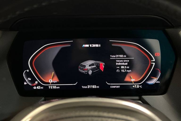 This 2022 BMW 1 Series M135i presents a superb ownership proposition, having been cherished by just one owner from new with a clear vehicle history check. Under the bonnet, youll find a potent 2.0 litre petrol engine paired with a four wheel drive system, ensuring confident performance in all conditions. This Euro 6 compliant model also boasts an MOT valid until September 2026, offering peace of mind for the foreseeable future. Notable features include a heated steering wheel for those chilly mornings, front and rear Park Distance Control to aid manoeuvring, and automatic headlights with a rain sensor for enhanced convenience. Experience exhilarating performance with this M135i, capable of accelerating from 0 to 60 miles per hour in a swift 4.8 seconds, a figure that sets it apart from many other vehicles in its class. The inclusion of LED headlights and Cruise Control with Brake Function and Speed Limiter further enhances the driving experience, providing both visibility and effortless long distance travel. Practicality is also a strong point, with generous boot space designed to accommodate your luggage and shopping needs with ease. Lifetime warranty available on this car, plus a £1,000 finance contribution when you part exchange. Voted UK Car Supermarket of the Year two years running, we offer 0% finance, part exchange, and lifetime warranties across our entire range. Every car is thoroughly inspected before sale and comes with a full history check, so you can buy with complete peace of mind. Buy with confidence on our best finance rates. Proud winners of the CarGurus Top-Rated Dealer 2022 and the MotoNovo Extra Mile Award. .12V Power Socket in Centre Console Front with Blanking Plug, 18in Alloy Wheels - M Double-Spoke Style 556 - Bi-Colour, Active Guard Plus, Air Conditioning Automatic with Two-Zone Control, Airbags, Alarm System - Thatcham 1 with Remote Control and Engine Immobiliser, Armrest - Front Centre, Attentiveness Assistant, Automatically Dimming Rear View Mirror, Black Sapphire, Bluetooth - Audio Streaming - with Compatible Devices, Bluetooth Hands Free with USB Audio Interface, BMW Connected Package Professional, BMW ConnectedDrive Online Services, BMW Emergency Call, BMW Live Cockpit Professional, BMW Mobility Tyre Sealing System, BMW TeleServices, Bumper System Front and Rear - Replaceable Deformation Elements for Impacts Up to 9mph, Central Locking Switch - Doors - Fuel Filler Cap - Luggage Compartment, Check Control Warning System for Monitoring of Lights and Door-Luggage Compartment Open Warning, Child Seat ISOFIX Attachment For The Two Outer Rear Seats And Front Passenger Seat, Childproof Locking System - Rear Doors and Electric Windows, Crash Sensor, Cruise Control with Brake Function and Speed Limiter, Cupholders - Two Front Centre Console, DAB Digital Radio, Dead-locking Function System to all Doors, Direction Indicator Side Lights Integrated in Exterior Mirrors, Door Sill Finishers with M135i Designation - Front Only, Drive Performance Control with ECO PRO and Comfort Modes, Drive-Away Locking System on All Doors-Luggage Compartment - Can Be De-Activated in iDrive Settings, DSC - Dynamic Stability Control Plus, ECO PRO Mode, Electric Handbrake, Electric Windows - Front and Rear with Open-Close Fingertip Control - Trap Release and Child Lock Function, EPS - Electric Power Steering, Exhaust Tailpipe - Cerium Grey with Bevelled Finish - Twin - Round 100mm - Left and Right Split, Extended Lighting, Extended Storage, Exterior Mirrors - Electrically Folding with Anti Dazzle, Exterior Parts in Body Colour, Exterior Trim - High Gloss Shadowline, First Aid Kit and Warning Triangle, Floor Mats - Velour, Front M Sport Seats, Front Windscreen Wipers with Integrated Washer Jets, Glove Box with Light, Grab Handles - Integrated in Roof Linings - Four, Headlining - Anthracite, Heat Protection Glazing with Green Tint, HiFi Loudspeaker System, High Level Third Brake Light, Illuminated Boston Interior Trim, Integrated Owners Handbook - Within iDrive Menu, Interior Lighting, Kidney Grille in Cerium Grey with Mesh Design, Larger Capacity Fuel Tank, Launch Control, LED Headlig