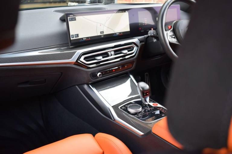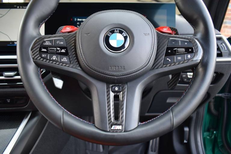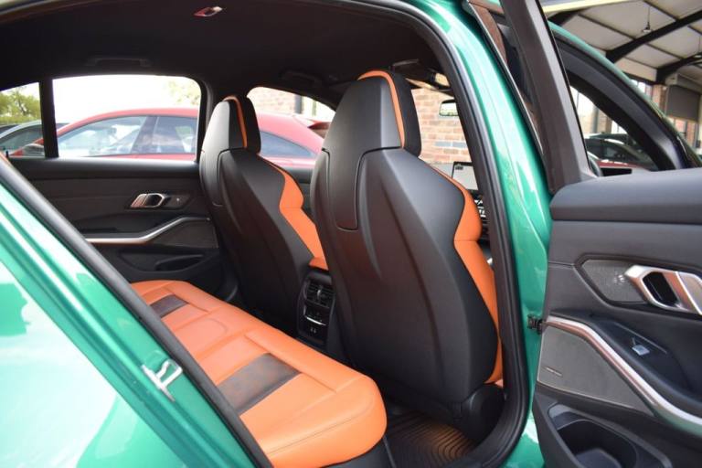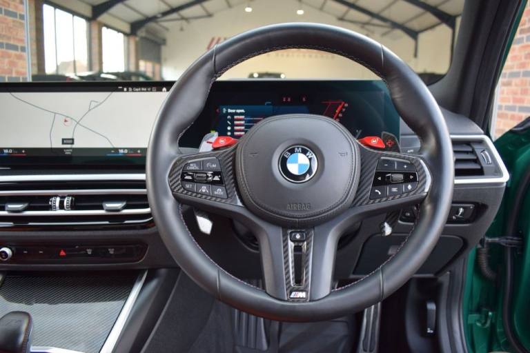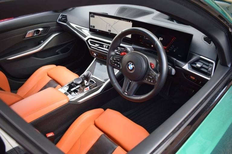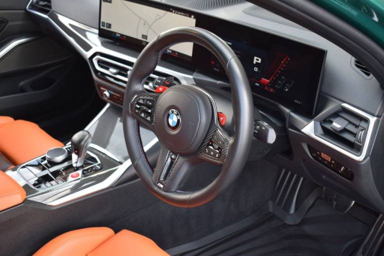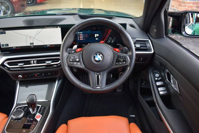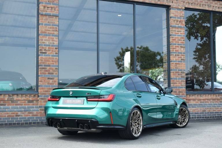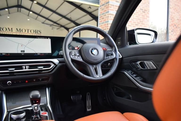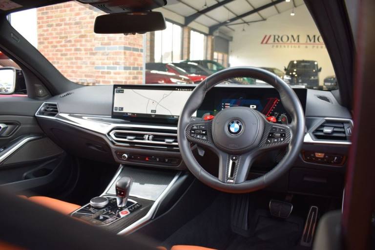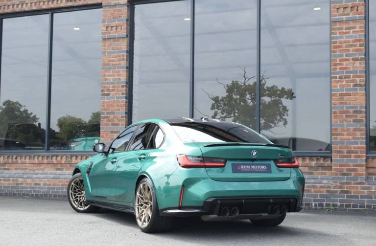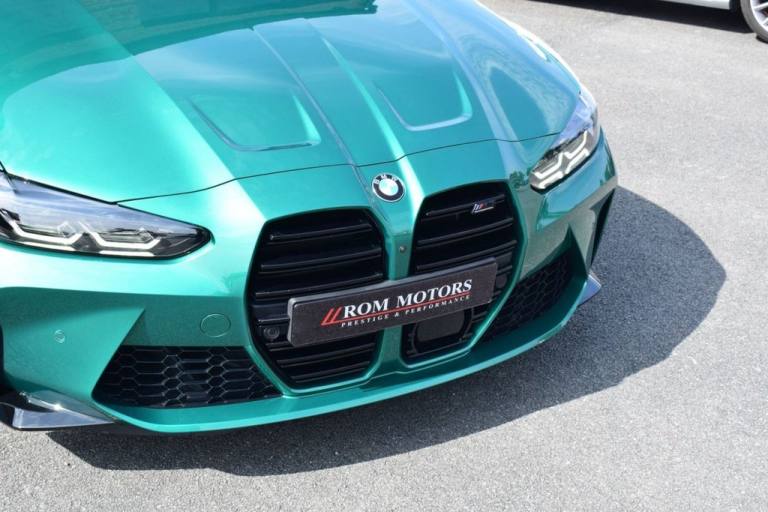 Rom Motors are delighted to present this stunning example of a BMW M3 Competition for sale. Finished in the ever so desirable Isle of Man Green metallic with contrasting Kyalami Orange Merino leather interior. On the outside it features the staggered 826M Forged alloy wheels finished in satin bronze which works ever so well with the colour combination! The car also benefits from a few of the desirable factory options such as the heated steering wheel, comfort package (keyless entry and electric boot lid) and technology plus package (area view camera, Drive Recorder and active cruise control). One owner from new, with full BMW service history, and a stunning colour combination makes this not one to miss! PAYMENT: We accept debit cards for payments up to £500. For larger payments we accept BACS (bank transfer) only. Please check transfer processing times and limits with your bank if you plan to pay on collection as we are unable to release cars without cleared funds. Please also bring anything you may need to access your online banking on the day including securekeys, card readers etc. Please note a £249 admin fee is applicable for purchases funded by third party finance lenders. 10.9% APR Finance Available along side a wide range of lenders. *Appointment Only* Please call ahead to arrange a viewing or test drive with a member of our friendly sales team. All our vehicles are HPI Clear & prepared to a high standard following a full pre-delivery inspection from our in house team of technicans. 3 Months Warranty is included on all vehicle with extensions available up to 36 months, ask our sales team for more details. Videos available on request. PAYMENT: We accept debit cards for payments up to £500. For larger payments we accept BACS (bank transfer) only. Please check transfer processing times and limits with your bank if you plan to pay on collection as we are unable to release cars without cleared funds. Please also bring anything you may need to access your online banking on the day including securekeys, card readers etc. Please note a £249 admin fee is applicable for purchases funded by third party finance lenders. Call 01455 633577 or WhatsApp 07870 606040.19in Front - 20in Rear Alloy Wheels - M Double Spoke - 826 - Forged - Bicolour Black with Mixed Tyres, 19in Front - 20in Rear Alloy Wheels - M Double Spoke - 826 - Forged - Jet Black with Mixed Tyres, Acoustic Glazing, Active Guard Plus, Air Conditioning - Automatic with Three-Zone, Airbags, Alarm, Ambient Lighting, Armrests, Automatic Start-Stop Button, BMW ConnectedDrive Online Services, BMW Emblem on Engine Compartment Lid and Tailgate, BMW Emergency Call, BMW Individual Lights - Shadowline, BMW Kidney - Frameless with Horizontal Double Grille Slates - Black High-Gloss with Model Badge, BMW Live Cockpit Professional, BMW TeleServices, Battery in Luggage Compartment, Bumper System, Centre Armrest in Rear - Folding with 2 Cup Holders, Centre Lock Switch, Closing System with Central Locking, Condition Based Service, Connected Package Professional, Crash Sensor, Cruise Control including Speed Limiting Function - LIM Button, Cupholder, DAB Digital Radio, DSC - Dynamic Stability Control Plus, Door Sill Finishers with Aluminium Inserts and Model Inscriptions, Door Sill Strips - M Sport Entry Sills, Double-Jointed Spring-Strut Front Axle, Driving Assistant, Driving Experience Switch, Electric Memory Seats, Electric Vehicle Immobiliser, Electric Window, Electro Mechanical Parking Brake, Electronic Differential Lock, Enhanced Bluetooth and Wireless Charging, Extended Storage, Exterior Mirror Caps and Rear Spoiler in High-Gloss Black, Exterior Trim - Extended High Gloss Shadowline, Exterior Trim - High-Gloss Shadowline, Floor Mats - Velour, Folding Wing Mirrors with Auto-Dimming, Follow-Me-Home Function, Front Lumbar Support, Front and Rear Apron Plastic in Body Colour, Galvanic Controls, Glove Compartment - Illuminated, Harman Kardon Surround Audio Sound System, Head-Up Display, Headlight Beam-Throw Control, Headlining - Anthracite, Heat Protection - Sun Protection Glazing, Heated Seats - Front, High-Beam Assistant, Illuminated Bow-Type Door Handles - in Body Colour - Drivers Side with Door Lock, Interior Trim - Black High Gloss, Interior Trim - Carbon Fibre, LED Rear Lights, Language Version English, Lower Edges of Bumpers - Side Sills - Edge Binding of Diffuser and Diffuser in Black High-Gloss, Luggage Compartment Lights, M Adaptive Suspension, M Compound Brakes with Red High Gloss, M Drive, M Drive Professional, M Seat Belts, M Sport Differential, M Sport Seats, M Steering Wheel, Model Badges in Black, Model Logo - Rear Right M3 Competition Inscription, Multif