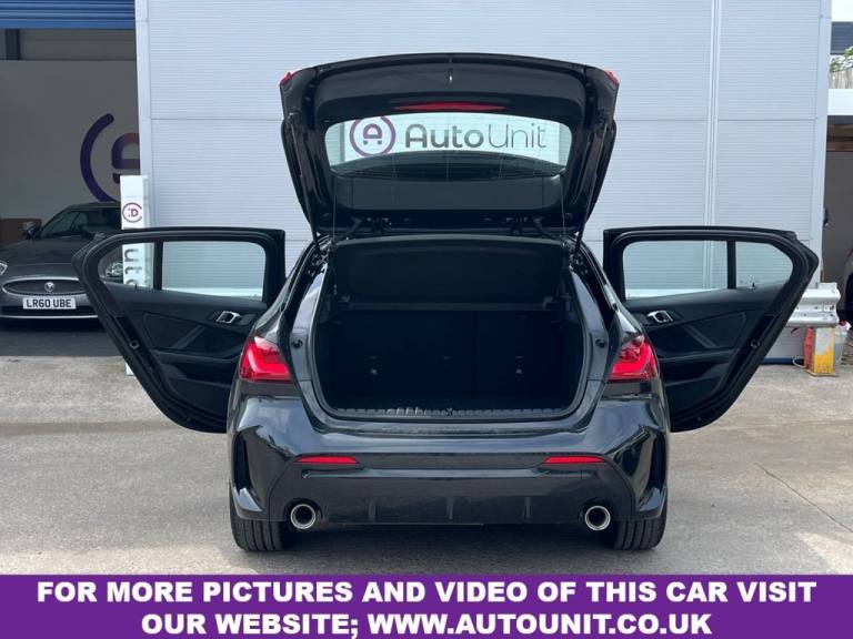 We are pleased to offer this low-mileage, new-shape BMW 1 Series, finished in upgraded Sapphire Black, with a fantastic specification to match its good looks. Inside the premium cabin, you sit on supportive leather seats, with all the technology at your fingertips. The large media screen boasts sat nav, Bluetooth, and USB connectivity, while the leather-wrapped steering wheel offers plenty of feel while driving. It has a smooth automatic gearbox, married to a TwinPower turbocharged engine, for an exhilarating driving experience. At Autounit, we pride ourselves on delivering an outstanding, stress-free customer experience. Every vehicle comes with a 3-month guarantee, our market-leading price promise, is fully HPI clear, and undergoes comprehensive safety checks carried out by our fully qualified in-house technician. All vehicles are prepared to a high standard, so you can buy with complete confidence and peace of mind. 01633 548282 Just 2 minutes from M4 Junction 25a autounit.co.uk.All Our Cars Come With 3 Month Warranty, Low Rate Finance Available**, Upgrade Your Warranty With Warranty Wise, 6 Months - 2 Years Cover Available**, Buy With Confidence - Were 5 Star Rated, 12V Power Socket in Centre Console Front with Blanking Plug, 18in Alloy Wheels - M Double-Spoke Style 819 - Bi-Colour, Active Guard Plus, Air Conditioning Automatic with Two-Zone Control, Airbags, Alarm System - Thatcham 1 with Remote Control and Engine Immobiliser, Armrest - Front Centre, Attentiveness Assistant, Automatically Dimming Rear View Mirror, BMW Connected Package Professional, BMW ConnectedDrive Online Services, BMW Emergency Call, BMW Live Cockpit Professional, BMW Mobility Tyre Sealing System, BMW TeleServices, Bluetooth - Audio Streaming - with Compatible Devices, Bluetooth Hands Free with USB Audio Interface, Bumper System Front and Rear - Replaceable Deformation Elements for Impacts Up to 9mph, Central Locking Switch - Doors - Fuel Filler Cap - Luggage Compartment, Check Control Warning System for Monitoring of Lights and Door-Luggage Compartment Open Warning, Child Seat ISOFIX Attachment For The Two Outer Rear Seats And Front Passenger Seat, Childproof Locking System - Rear Doors and Electric Windows, Crash Sensor, Cruise Control with Brake Function and Speed Limiter, Cupholders - Two Front Centre Console, DAB Digital Radio, DSC - Dynamic Stability Control Plus, Dead-locking Function System to all Doors, Direction Indicator Side Lights Integrated in Exterior Mirrors, Door Sill Finishers in Black Plastic with Inserted M Designation in Metallic Look - Front Only, Drive Performance Control with ECO PRO and Comfort Modes, Drive-Away Locking System on All Doors-Luggage Compartment - Can Be De-Activated in iDrive Settings, ECO PRO Mode, EPS - Electric Power Steering, Electric Handbrake, Electric Windows - Front and Rear with Open-Close Fingertip Control - Trap Release and Child Lock Function, Exhaust Tailpipe 90mm - Chrome Twin - Round - Left and Right - Split, Extended Lighting, Extended Storage, Exterior Mirrors - Electrically Folding with Anti Dazzle, Exterior Parts in Body Colour, Exterior Trim - High Gloss Shadowline, First Aid Kit and Warning Triangle, Floor Mats - Velour, Front Windscreen Wipers with Integrated Washer Jets, Glove Box with Light, Grab Handles - Integrated in Roof Linings - Four, Headlining - Anthracite, Heat Protection Glazing with Green Tint, High Level Third Brake Light, Illuminated Boston Interior Trim, Incorrect Fuelling Pr