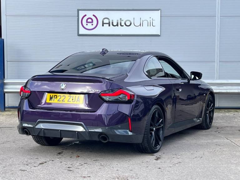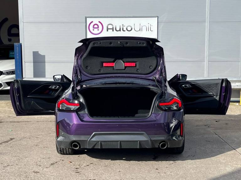 This 2022 BMW 2 Series 220i M Sport offers a superb blend of sporty design and efficient performance. As a Euro 6 compliant model, it features a responsive 2.0 litre petrol engine, delivering impressive fuel economy. The M Sport trim enhances its dynamic appeal, making it a stylish choice for any driver. This particular 220i M Sport stands out with its low insurance group rating, which can help to keep your running costs down. Furthermore, its low CO2 emissions indicate a more environmentally conscious performance compared to many other vehicles in its class. This combination of M Sport styling, efficient 2.0 litre petrol power, and cost saving benefits makes this BMW 2 Series a compelling option. At Autounit, we pride ourselves on delivering an outstanding, stress-free customer experience. Every vehicle comes with a 3-month guarantee, our market-leading price promise, is fully HPI clear, and undergoes comprehensive safety checks carried out by our fully qualified in-house technician. All vehicles are prepared to a high standard, so you can buy with complete confidence and peace of mind. 01633 548282 Just 2 minutes from M4 Junction 25a autounit.co.uk.All Our Cars Come With 3 Month Warranty, Low Rate Finance Available**, Upgrade Your Warranty With Warranty Wise, 6 Months - 2 Years Cover Available**, Buy With Confidence - Were 5 Star Rated, 19in Alloy Wheels - Double Spoke Style - 791 M - Jet Black with Mixed Tyres, 12V Power Socket in Centre Console Front with Blanking Plug, 18in Alloy Wheels - Double Spoke Style - 848 Bicolour Jet Black, Acoustic Windscreen for Reduced Driving Noise, Active Guard Plus, Adaptive LED Headlights, Air Conditioning - Automatic with Three-Zone, Airbags - Driver and Front Passenger Side, Airbags - Driver and Passenger, Airbags - Head - Front and Rear, Alarm System Thatcham Category 1 with Remote Control and Engine Immobiliser, Ambient Lighting, Armrest - Front, Attentiveness Assistant, Automatic Windscreen Wipers and Headlights, Automatically Dimming Rear View Mirror, BMW Connected Package Professional, BMW ConnectedDrive Online Services, BMW Legal Emergency Call, BMW Live Cockpit Professional, BMW Mobility Tyre Sealing System, BMW TeleServices, Bluetooth - Audio Streaming - with Compatible Devices, Bumper System - Front and Rear, Central Locking Switch - Doors - Fuel Filler Cap - Luggage Compartment, Check Control System for Monitoring of Lights and Door-Luggage Compartment Open Warning, Child Seat ISOFIX Attachment for the Two Outer Rear Seats, Condition Based Service, Crash Sensor, Cruise Control with Brake Function, Cupholders - Two Front Centre Console, DAB Tuner, DSC - Dynamic Stability Control - Stabilises the Vehicle in Extreme Situations - Controls Traction, Dead-locking Function System to all Doors, Door Sill Finishers in Plastic with BMW Designation, Drive Performance Control with ECO PRO - Comfort and Sport Modes, Drive-Away Locking System on All Doors-Luggage Compartment - Can Be De-Activated in iDrive Settings, EPS - Electric Power Steering, Electric Windows - Front, Electrically Operated Handbrake including Automatic Hold Function - Automatic Release When Driving Off, Exhaust Tailpipe - 2x 90mm - Left and Right, Extended Storage, Exterior Parts in Body Colour, Exterior Trim - High Gloss Shadowline, First Aid Kit and Warning Triangle, Floor Mats - Velour, Front Passenger Airbag Deactivation, Front Windscreen Wipers with Integrated Washer Jets, Head Restraints - Rear and Folding, Headlining - M Anthracite, Heat Protection Glazing with Green Tint, High Level Third Brake Light, High-Beam Assistant, Integrated Owners Handbook - Within iDrive Menu, Interior Tri