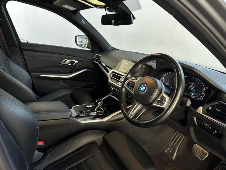 1 OWNER, REAR CAMERA, xDRIVE1 OWNER FROM NEW, - With only one previous owner, this 2022 BMW 3 Series 330e M Sport is a sophisticated saloon that combines performance with efficiency. The M Sport trim enhances the car's athletic appeal, while the four-wheel drive system ensures confident handling in various conditions. The vehicle is powered by a 2.0L Petrol Plug-in Hybrid engine and meets Euro 6 emission standards.Equipped with the M Sport Pro Package and BMW Individual Piano Black interior trim, this 3 Series offers a luxurious and comfortable driving experience. The automatic three-zone air conditioning, including climate control, ensures a pleasant environment for all occupants. Heated seats for the driver and front passenger add extra comfort during colder months. Adaptive LED headlights provide excellent visibility, further enhancing the driving experience. The car's ability to accelerate from 0-62mph in just 5.8 seconds demonstrates its impressive performance capabilities, setting it apart from other vehicles in its class.The vehicle also includes front and rear parking sensors, digital dash, ambient lighting, satnav and a reverse parking camera with park assist and reverse assistant.