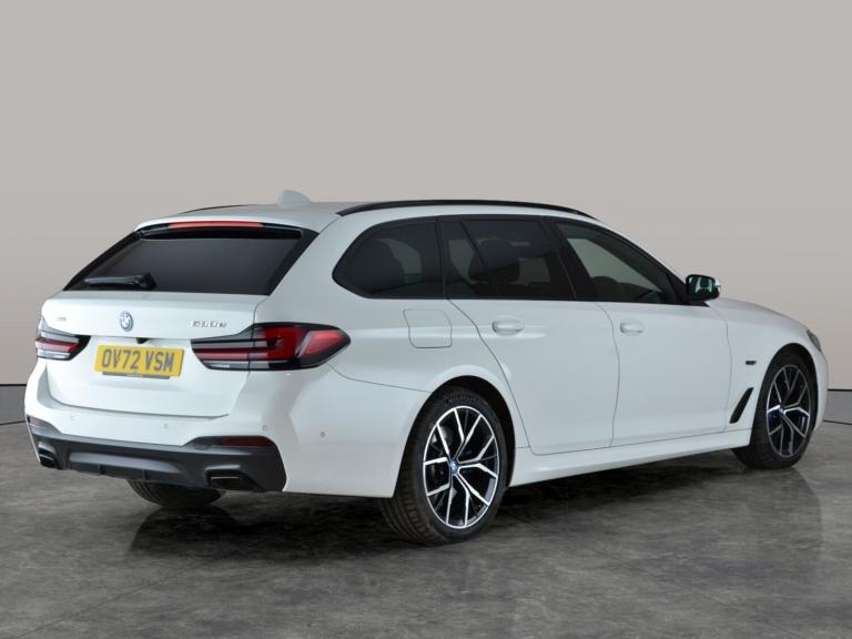 Experience the perfect blend of style and innovation with this white BMW 5 Series Touring. Enjoy the M Sport Pro Package, a heated steering wheel, and rear privacy glass with sun protection for extra comfort and exclusivity. Its petrol plug-in hybrid technology offers seamless automatic driving, complemented by Park Assist, LED headlights, heated seats, and paddle shift. The digital cockpit and BMW Live Cockpit Professional keep you connected, while Performance Control and the M Sport braking system ensure a dynamic drive. 3 services recorded, last serviced on 05/12/2025 at 61,815 miles. MOT to 23/10/2026. Visit our website for service history, online valuation, full vehicle specification plus multiple images. Certain features listed may be available via subscription packages at extra costs, please consult with BMW for details. This vehicle is VAT qualifying. Any feature/option specified here is from 3rd party data. We cannot guarantee the accuracy of any specification supplied by a 3rd party. We recommend that you physically check the specification of the vehicle on site prior to purchase. This information does not form part of the buying contract. Terms & Conditions apply. We have over 2,000 cars available from our 10 national branches, check our website to see all our stock. Our Trustpilot rating is 4.4/5 with over 9,000 reviews.