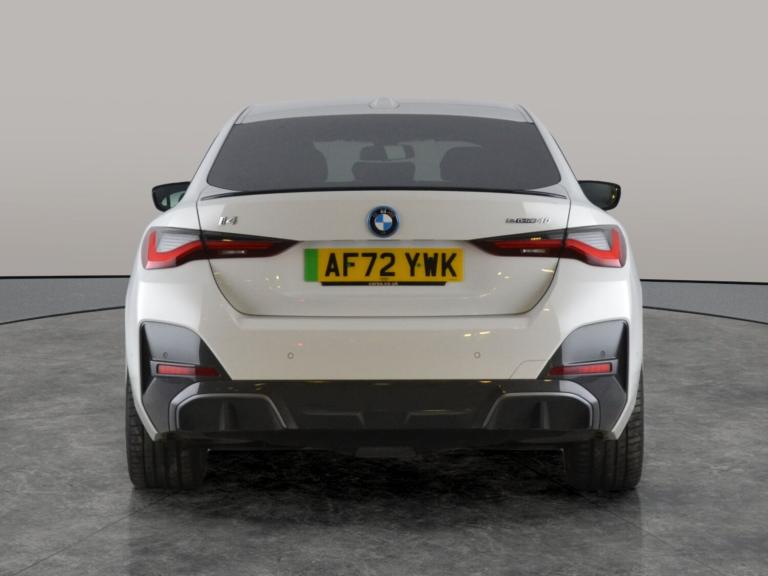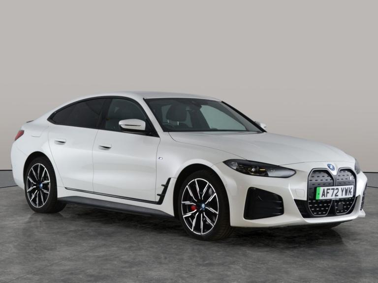 Experience the thrill of the BMW i4 M Sport Gran Coupe, featuring the striking M Sport Pro Package and eye-catching 19in M Light Y-Spoke wheels. Enjoy luxurious Alcantara and heated seats, intuitive Park Assist and a reversing camera for easy manoeuvring. Stay connected with Apple CarPlay, BMW Connected Package Professional, and WiFi. Enjoy stress-free journeys with Adaptive Cruise Control, Lane Departure Warning, and Attentiveness Assistant, all illuminated by brilliant LED headlights. Drive electric in comfort and style. 1 service recorded, last serviced on 21/01/2026 at 23,549 miles. MOT to 11/12/2026. Visit our website for service history, online valuation, full vehicle specification plus multiple images. Certain features listed may be available via subscription packages at extra costs, please consult with BMW for details. This vehicle is VAT qualifying. Any feature/option specified here is from 3rd party data. We cannot guarantee the accuracy of any specification supplied by a 3rd party. We recommend that you physically check the specification of the vehicle on site prior to purchase. This information does not form part of the buying contract. Terms & Conditions apply. We have over 2,000 cars available from our 10 national branches, check our website to see all our stock. Our Trustpilot rating is 4.4/5 with over 9,000 reviews.
