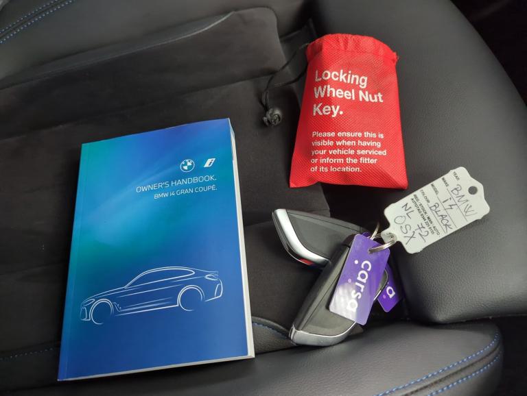 Discover the BMW i4 M Sport Gran Coupean electrifying black hatchback combining luxury and innovation. Enjoy the comfort of premium Alcantara upholstery and heated seats. Navigate effortlessly with BMW Professional Sat Nav, and stay connected with Apple CarPlay and Wifi. Safety is a priority with adaptive cruise control, active lane assist, and lane departure warning. Parking is a breeze thanks to Park Assist and a reversing camera, while striking LED headlights add a modern touch. Experience the future of driving with BMWs signature style. 2 services recorded, last serviced on 27/08/2025 at 40,573 miles. MOT to 15/09/2026. Visit our website for service history, online valuation, full vehicle specification plus multiple images. Certain features listed may be available via subscription packages at extra costs, please consult with BMW for details. This vehicle is VAT qualifying. Any feature/option specified here is from 3rd party data. We cannot guarantee the accuracy of any specification supplied by a 3rd party. We recommend that you physically check the specification of the vehicle on site prior to purchase. This information does not form part of the buying contract. Terms & Conditions apply. We have over 2,000 cars available from our 10 national branches, check our website to see all our stock. Our Trustpilot rating is 4.4/5 with over 9,000 reviews.