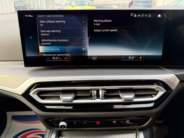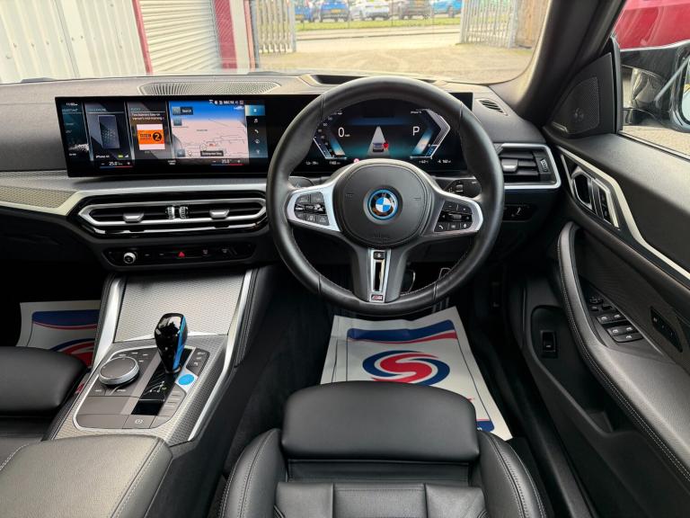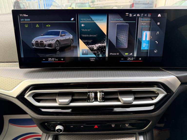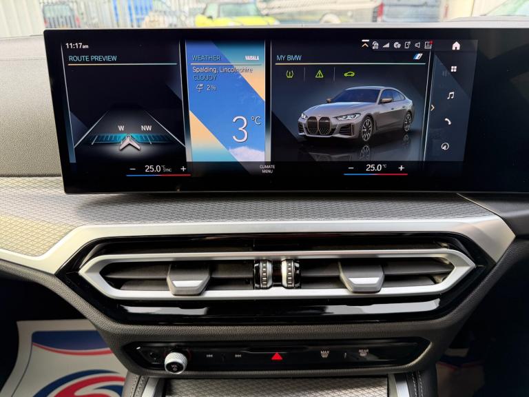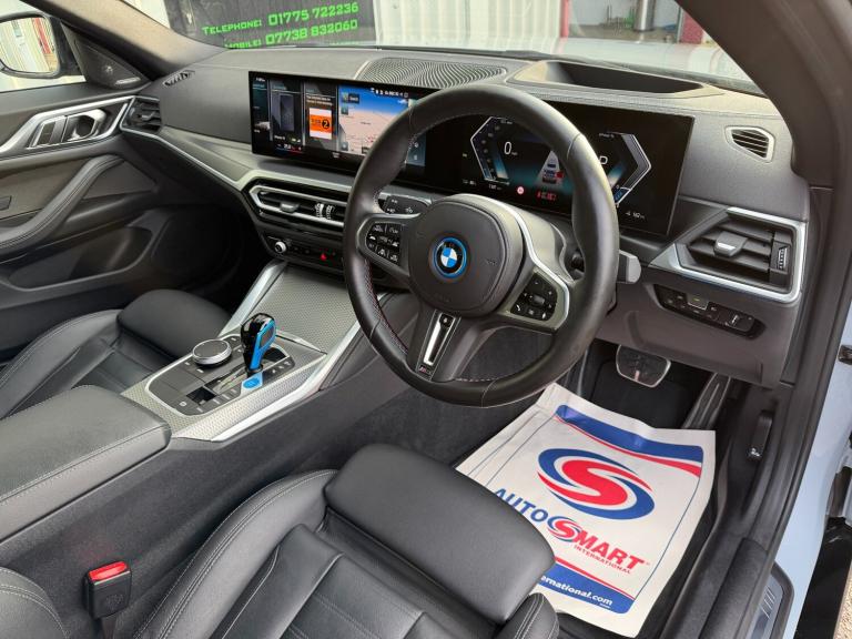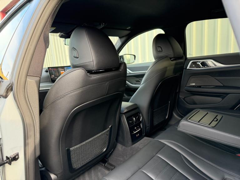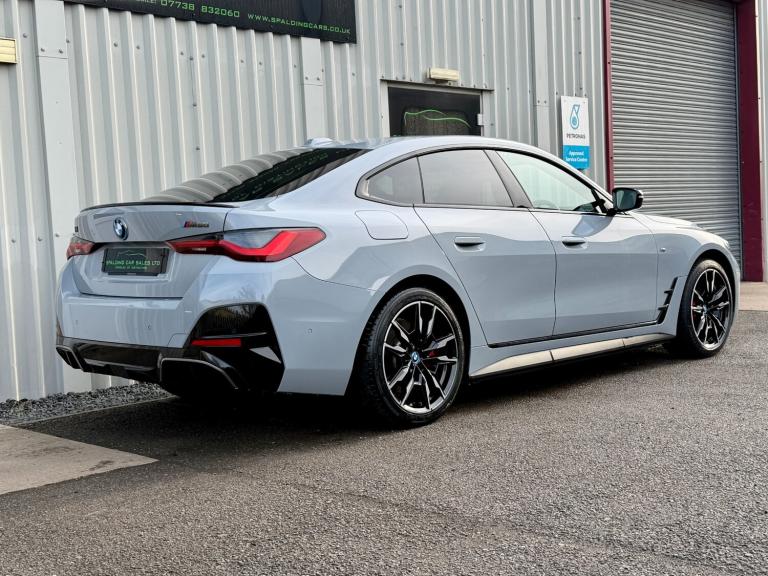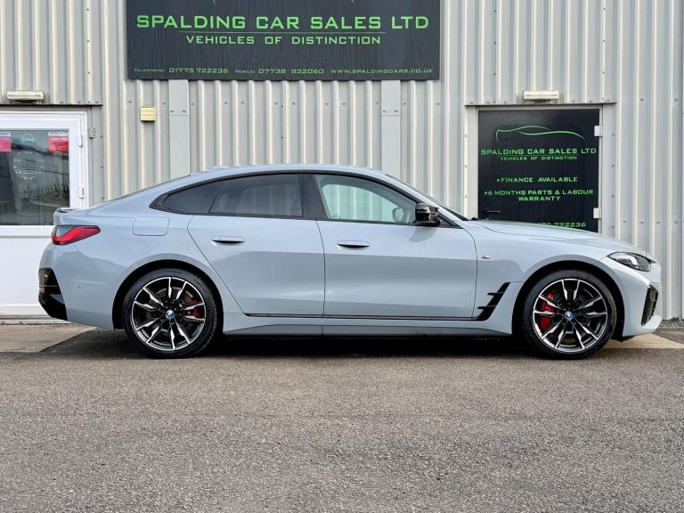 The Specification of this BMW i4 Gran Coupe 400kw 84kwh M50 is as follows, Brooklyn Grey Metallic - Black Vernasca Leather Sports Seats with Knee Supports - Electrically Adjustable Drivers & Passengers Seats with Memory - Variable Heated Front Seats - M Seat Belts - Tri Zone Climate Control with Rear Controls & Air Vents - Electric Front & Rear Windows - Electric Folding Mirrors with Auto Dimming Lenses - Wide Screen Live Operating Area Professional - Widescreen Professional Satellite Navigation & Media System - RDS DAB Digital Stereo - USB Interface - Bluetooth Music Streaming - Hard Drive Music - BMW Apps Inc Spotify - Apple CarPlay - Android Auto - Harman Kardon Surround Sound System - Connected Drive Services - Connected Package Professional - Bluetooth Phone - Wireless Charging - Drivers Assistant Professional - Adaptive Cruise Control with Assisted Driving Mode - Active Cruise Control with Distance Control & Assisted Driving Mode - Speed Limiter - Blind Spot Monitors - Active Lane Guidance - Steering & Lane Control Assist - Front Collision Warning - Head Up Display - Virtual Cockpit - Nappa Leather M Sport Multi Function Steering Wheel - BMW Iconic Sound - Rear Centre Armrest Cupholders, 3 Adjustable Rear Head Rests, 3x3 Point Rear Seat Belts, Isofix Child Seat Points to Rear Outer Seats, Split Folding Rear Seats 40/20/40, 3 Pin Charger & Type 2 Cable - BMW I4 Gran Coupe 400KW 84KWH M50 Bodystyling - M Sport Aerodynamics Package - M Sport Pro Front & Rear Bumpers / Rear Diffuser / Side Skirts / Rear Spoiler & Grilles - 19 inch M Sport Double Spoke Alloys finished in Black & Silver 861M - Adaptive Suspension - M Performance Red Calipers - M Shadowline BMW Laserlights with Signature LED Daytime Running Lights - High Beam Assist - Shadow Line Exterior Trim - Reverse Assistant - Park Assist Plus - Self Park - 360 Degree Surround View Cameras with Guidance Lines - 3D Remote View - Privacy Glass, 2 Keys, Full BMW Service History, 12M MOT, 6 Months Comprehensive Platinum Plus Warranty. Factory Fitted Options include: Vernasca Leather - Black with Grey Stitching, Electrically Adjustable Seats with Drivers Memory Facility, Front Lumbar Support, Steering Wheel - Heated, Comfort Pack, Tech Plus Pack, Driving Assistant Professional, Adaptive Cruise Control with Assisted Driving Mode, Active Cruise Control with Assisted Driving Mode, Blind Spot Monitors, Lane Keeping Assistant with Active Side Collision Protection, Steering and Lane Control Assistant, Crossing Traffic Warning Front, Crossroads Warning and City Braking Function, Evasion Aid, Wrong Way Warning, Driver Recorder, Head Up Display, Wireless Charging, Visibility Pack, BMW Laserlights, Adaptive High Beam Assist, High-Gloss Shadowline with Extended Contents, Parking Assistant Plus, 360 Degree Surround View Cameras with Guidance Lines - 3D Remote View Via My BMW App