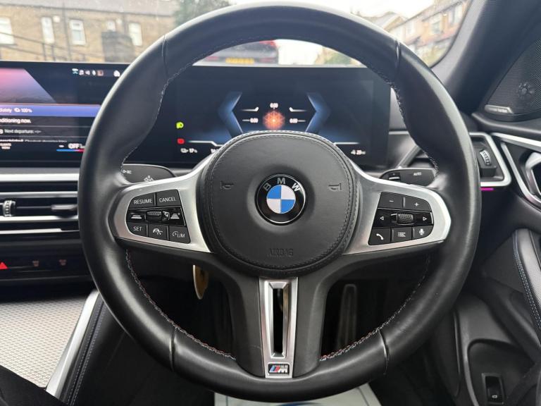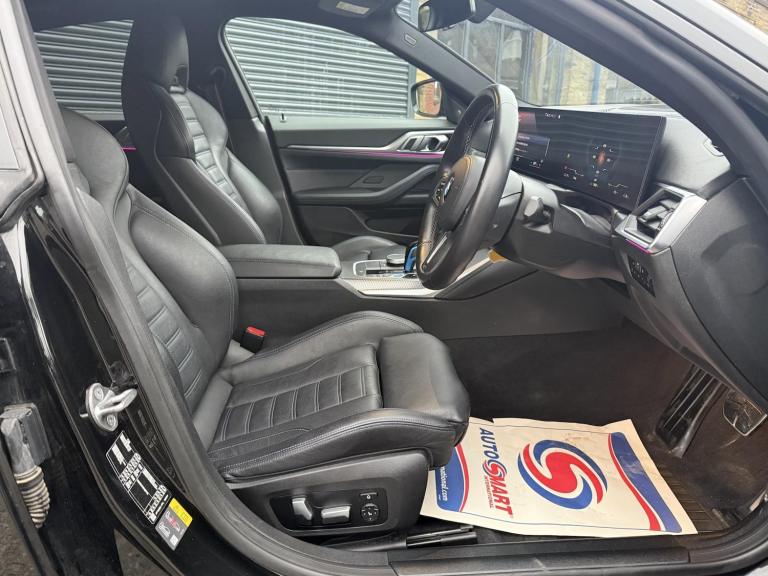 Cat S Here at AJ Motors, we are proud to offer this stunning 2022 BMW i4 M50 83.9kWh Gran Coupe, a remarkable electric hatchback that combines luxury, performance, and cutting-edge technology. With only 18,700 miles on the clock and a powerful 537 bhp engine, this vehicle promises an exhilarating driving experience, all while being ULEZ compliant and boasting an impressive battery range of 316 miles. Plus, with over £3,000 of optional extras, this BMW is truly a standout choice for those who appreciate both style and substance. Step inside, and you'll be greeted by the luxurious Vernasca Leather in Black with Blue Contrast Stitching. This premium upholstery not only elevates the interior aesthetics but also provides exceptional comfort and support for all passengers. The striking blue contrast stitching adds a touch of flair, making every journey feel special. The Black Sapphire exterior finish gives this BMW a sleek and sophisticated look that turns heads wherever you go. This deep, glossy black not only enhances the vehicle's sporty profile but also complements the dynamic lines of the Gran Coupe design, ensuring you make a statement on the road. Inside, the Carbon Fibre Interior Trim adds a modern and sporty touch to the cabin. This lightweight material not only looks fantastic but also enhances the overall driving experience by providing a sense of performance and agility. It’s the perfect complement to the high-tech features of the i4 M50. For those who value comfort, the M Sports Seats for both the driver and passenger are a fantastic addition. These seats are designed to provide excellent support during spirited drives, ensuring you feel secure and comfortable no matter the journey. The added Front Lumbar Support for the driver’s seat is a thoughtful touch, allowing for personalised comfort on longer trips. With its automatic transmission and four-wheel drive capabilities, this BMW i4 M50 is not just about looks; it delivers a thrilling performance with an acceleration of 0-60 mph in just 3.9 seconds and a top speed of 140 mph. The vehicle is also equipped with a long MOT and has had no previous owners, making it a reliable choice for your next adventure. In summary, if you’re looking for a vehicle that combines luxury, performance, and cutting-edge technology, this BMW i4 M50 is the perfect choice for you. With its stunning design and impressive features, it’s sure to make every drive an unforgettable experience.
