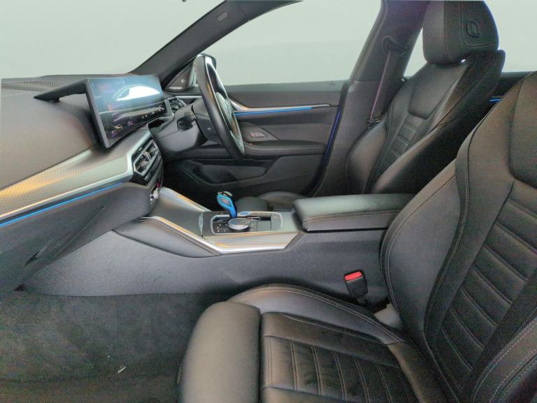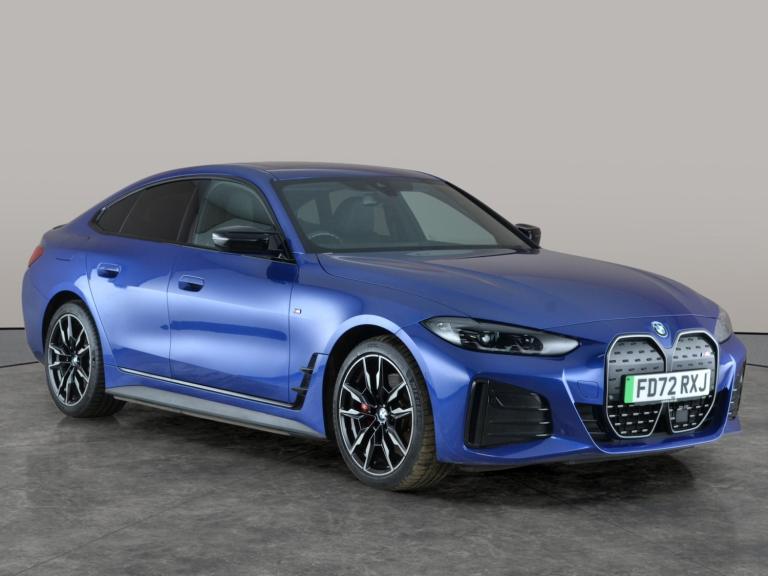 Experience the thrill of the BMW i4 M50 Gran Coupe in striking blue, enhanced with a panoramic sunroof, luxurious Vernasca leather and a heated steering wheel. Enjoy added comfort with front lumbar support for the driver and the highly desirable Comfort Pack. Top features include adaptive cruise control, a vivid head-up display, active lane assist, and the incredible Harman/Kardon sound system. Adaptive M Sport suspension and LED headlights round out an exhilarating electric driving experience. 1 service recorded, last serviced on 27/11/2024 at 17,246 miles. MOT to 29/12/2026. Visit our website for service history, online valuation, full vehicle specification plus multiple images. Certain features listed may be available via subscription packages at extra costs, please consult with BMW for details. This vehicle is VAT qualifying. Any feature/option specified here is from 3rd party data. We cannot guarantee the accuracy of any specification supplied by a 3rd party. We recommend that you physically check the specification of the vehicle on site prior to purchase. This information does not form part of the buying contract. Terms & Conditions apply. We have over 2,000 cars available from our 10 national branches, check our website to see all our stock. Our Trustpilot rating is 4.4/5 with over 9,000 reviews.