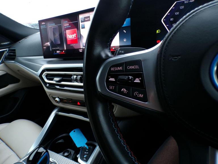 This 2022 BMW i4 M50 presents an exceptional opportunity with its remarkably low mileage of just 24,304 miles for its age. As a fully electric, four wheel drive vehicle, it combines performance with efficiency. This particular model boasts a substantial 84 kWh battery, offering a new vehicle range of up to 318 miles. Charging is convenient, with a full charge at home taking approximately 12 hours and 30 minutes using a 7kW charger, while rapid public charging can achieve 80% capacity in as little as 34 minutes. Inside, you'll find a premium experience with the Harman Kardon Surround Audio Sound System, a Reversing Assist Camera for easier parking, and convenient Wireless Phone Charging. The BMW Live Cockpit Professional, complete with a Head Up Display, and automatic climate control ensure a comfortable and connected drive.The performance of this BMW i4 M50 is truly noteworthy, with an impressive 0-62mph acceleration time of just 3.9 seconds, setting it apart from many other electric vehicles. This rapid acceleration is a key indicator of its superior performance capabilities. Furthermore, the generous boot space provides ample practicality for everyday use and longer journeys. With its combination of electric power, impressive range, rapid charging capabilities, and a suite of advanced features, this i4 M50 offers a compelling and advanced driving experience.