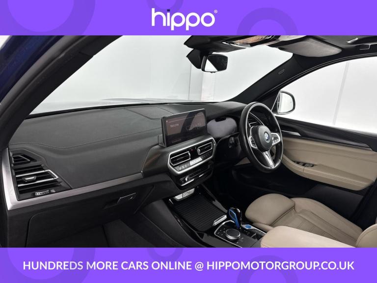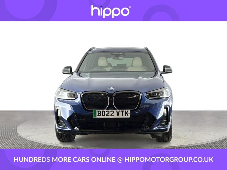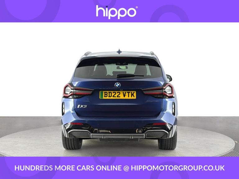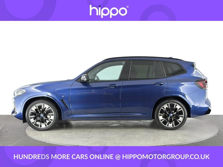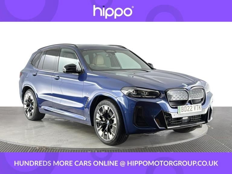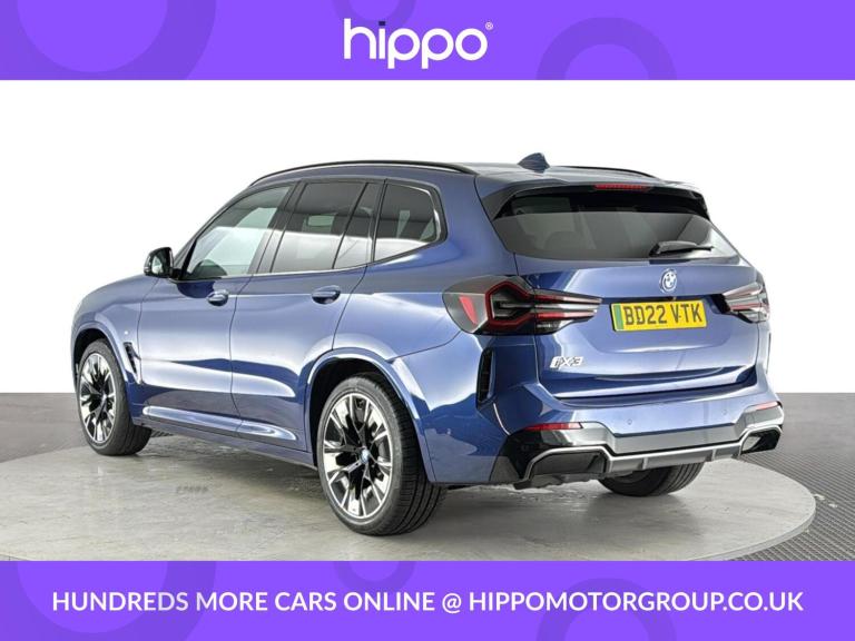 Presenting this BMW iX3 80kWh M Sport Pro SUV 5dr Electric Auto, finished in striking Phytonic Blue and featuring 20-inch M Aerodynamic bi-colour alloy wheels. With 54,698 miles on the clock and one recorded service at 53,000 miles, this electric SUV is an excellent choice for drivers seeking comfort and innovation. The model boasts a panoramic glass sunroof, providing an enhanced sense of space and natural light throughout the interior. Powered by a responsive 286 PS electric motor, the iX3 combines efficiency with dynamic on-road performance. Practicality is matched by its modern styling, making it suitable for family, commuting, or leisure use. Hippo Approved is known for a wide selection of vehicles suited for various needs and budgets. Each car undergoes a rigorous 130-point quality and safety inspection at our state-of-the-art £3 million preparation centre, ensuring your peace of mind. Additionally, we offer tailored finance packages for personal and business use, making it easy to acquire your ideal car.