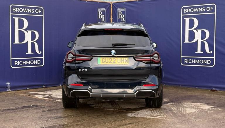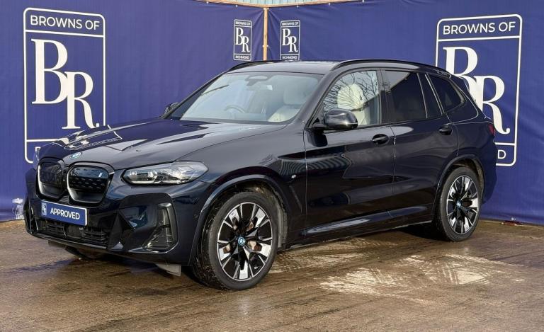 Browns of Richmond are proud to present the BMW iX3 – a premium electric SUV that combines BMW’s renowned driving dynamics with zero-emission performance. Finished in Carbon Black and complemented by 20-inch Aero alloy wheels, this iX3 delivers sleek styling and aerodynamic efficiency.Inside, the cabin exudes luxury with Vernasca leather upholstery in Oyster with Grey contrast stitching, offering exceptional comfort. Heated front seats with three-stage adjustment ensure warmth in colder months, while BMW’s intuitive layout and tactile controls make every journey effortless.Under the skin, the iX3 features an 80 kWh battery, providing a real-world range of 235–250 miles. Charging costs can be as low as £5 on the right tariff, equating to around 2p per mile – outstanding value for an SUV of this calibre. Performance is equally impressive, with instant torque and 0–60 mph in just 6.5 seconds, delivering the exhilarating acceleration EV drivers love.Despite its performance credentials, the iX3 remains practical and easy to live with, offering smooth handling, compact dimensions for city driving, and a rear parking camera for added convenience.This example has been maintained exclusively within the BMW network, reflecting the care and attention it has received. It also retains the remainder of BMW’s 8-year/100,000-mile high-voltage battery and drive unit warranty, ensuring peace of mind for years to come. Plus, it has passed our comprehensive 114-point inspection, confirming it’s ready for its next owner.At Browns of Richmond, we’re more than a dealership – we’re EV specialists with years of real-world experience. Whether you need advice on charging, range, or ownership, we’re here to guide you every step of the way.Contact us today to arrange a test drive or learn more – we’re here to make your transition to electric effortless.The advertised price is plus a £199 fee for the Browns Signature Care Package. Click here for details: [Website URL removed].