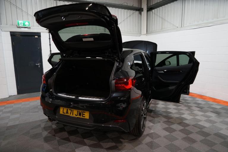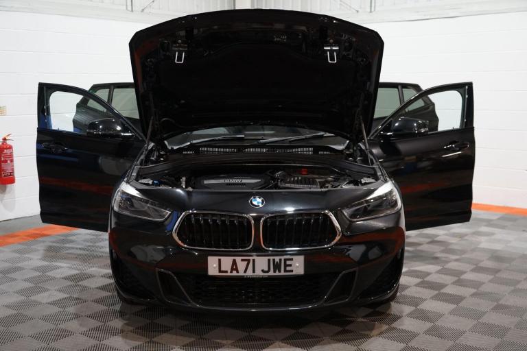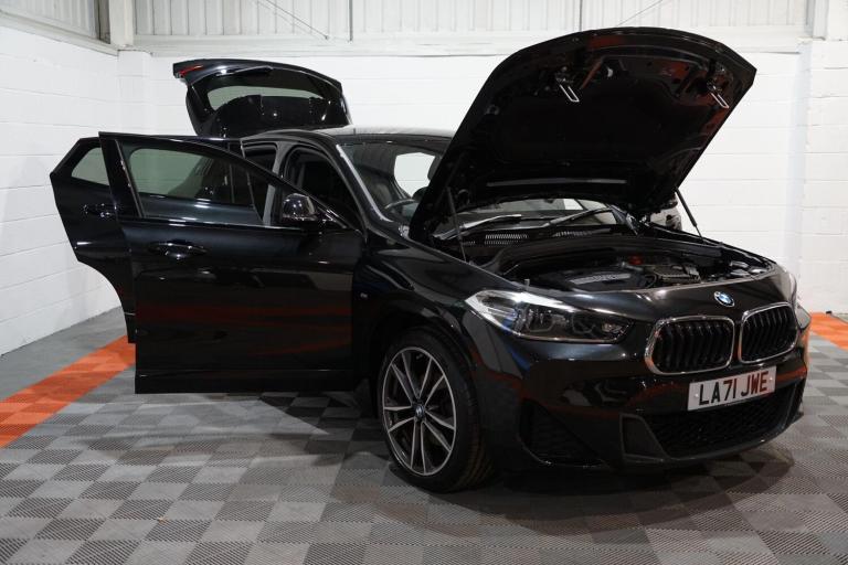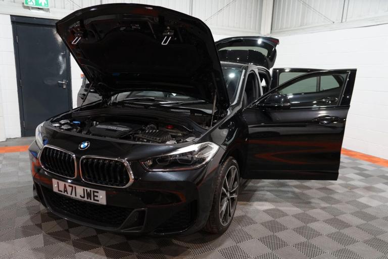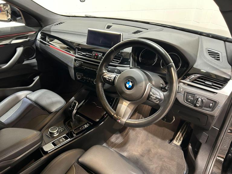 We are pleased to present this stylish and sporty BMW X2 1.5 18i M Sport sDrive DCT, finished in sleek Black Sapphire Metallic, offering a dynamic blend of coupe-inspired design, everyday practicality, and BMW driving refinement.Powered by a responsive 1.5-litre petrol engine paired with a smooth dual-clutch automatic transmission, this X2 delivers effortless performance and excellent efficiency, making it equally suited to city driving and longer motorway journeys. The M Sport specification enhances both the driving experience and the visual appeal, giving the car a more athletic stance and sharper road presence.Inside, the cabin is finished to BMW’s high standards, with a driver-focused layout and quality materials throughout. Heated front seats provide added comfort, while the extended lighting package creates a welcoming ambience during evening drives. Satellite navigation, Bluetooth connectivity, and Apple CarPlay ensure every journey is convenient and seamlessly connected. Cruise control adds ease on longer motorway trips.Practicality is well covered thanks to Park Distance Control with front and rear sensors, making parking and low-speed manoeuvres simple and stress-free. Sun protection glass adds privacy and helps keep the cabin cool, while electrically adjustable exterior mirrors complete the well-rounded specification.This BMW X2 M Sport offers a distinctive design, premium features, and smooth automatic performance, making it an excellent choice for those seeking a compact SUV with a sporty edge and everyday usability.