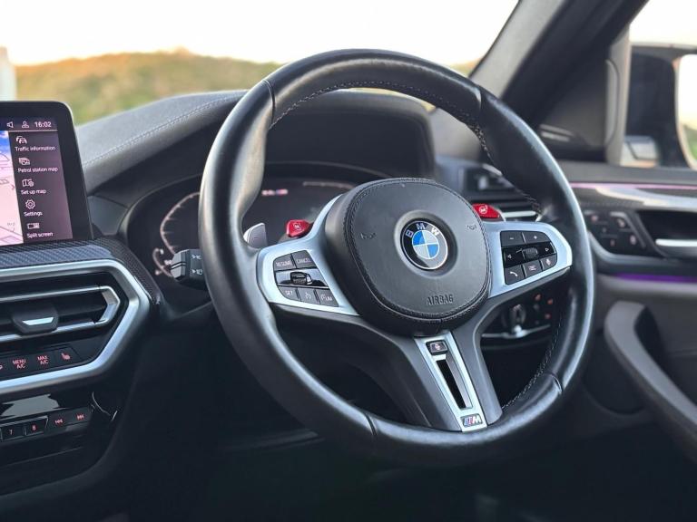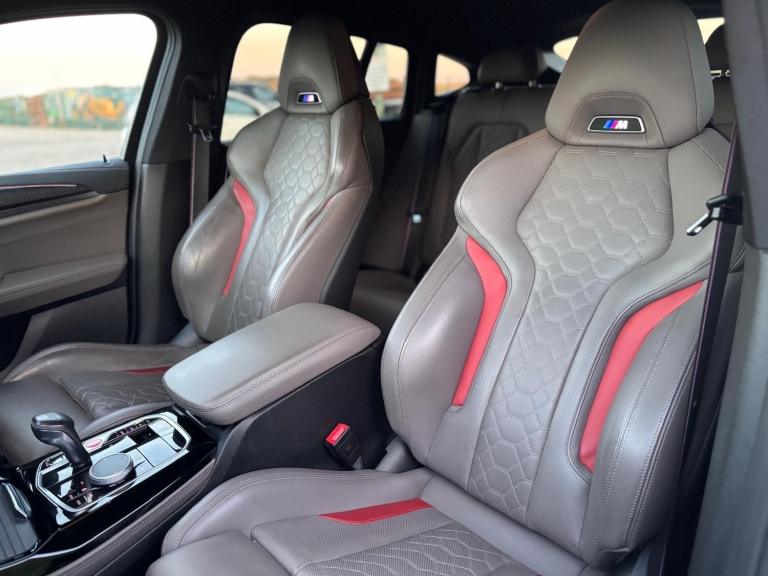 Brooklyn Grey With Adelaide Grey, Carbon Fibre Interior, Heads Up Display, Black Pack, Privacy Glass, Harman/Kardon Sound System, Apple Car Play, Adaptive LED Headlights, 21 Gloss Black Alloys & Red High Gloss M Compound Callipers, Reverse Camera, Front & Rear Park Distance Control,Heated Multi Function Steering Wheel With Paddle Shift, Programmable M-Mode Buttons, Voice Command, Digital Virtual Cockpit, Full Adelaide Grey Merino Leather With Orange Accent Seats, Heated Front & Rear Seats, M Sport Seats With M Illuminated Emblem, Electric Adjust With Memory & Lumbar Support Front Seats, Iso Fix Rear Seats, M-Style Seatbelts, Satellite Navigation, Bluetooth Connection, Telephone Preparation, Gesture Control, BMW Assistance, BMW Customisable Drive Setup, Air Conditioning, Three-Zone Climate Control, Heated Front & Rear Windscreens, i-Drive Control Panel, Auto Start/Stop, Auto Hold, Exhaust Control, Armrest With Storage, USB, x3 USB-C, x2 Keys, Service History, Outstanding Example!This 2022 BMW X4 M i Competition is a remarkable example, having been cherished by only one owner since new. This striking four wheel drive model boasts a powerful 3.0 litre petrol engine, meeting Euro 6 emission standards. Inside, you'll find a wealth of premium features designed for comfort and connectivity, including the M Carbon Package, BMW Connected Package Professional with Apple CarPlay, and a Head Up Display. Enjoy your journeys with the superb Harman Kardon loudspeaker system and the convenience of seat heating for both front and rear occupants.Experience exhilarating performance with the X4 M i Competition, capable of accelerating from 0 to 62mph in a mere 3.8 seconds, showcasing its dynamic prowess. This vehicle also offers impressive practicality with its large boot space, making it suitable for various needs. Furthermore, its substantial towing weight of 2400 kg provides added versatility. These highlights collectively demonstrate the superior engineering and thoughtful design that set this BMW apart from other vehicles in its class.