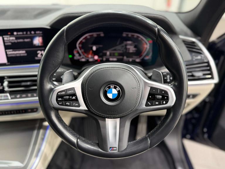 Introducing the stunning BMW X5 3.0 xDrive 30d M Sport MHEV, a true masterpiece on wheels. With only 24,115 miles on the clock and 2 careful owners, this vehicle is in fantastic condition.Finished in Tanzanite Blue exterior, this BMW X5 is sure to turn heads wherever you go. But it's not just about looks - this beauty comes with a range of extras to enhance your driving experience. From the 20in Alloy Wheels to the Adaptive M Suspension, every detail has been carefully crafted for maximum performance and style.Step inside and you'll be greeted by the luxurious Perforated Vernasca Leather upholstery in Ivory White and Black. The M Sport Pro Package and Technology Package ensure that you have all the latest features at your fingertips, while the Sun Protection Glass keeps you cool and comfortable on those sunny days.Don't miss out on the opportunity to own this exceptional Bmw X5. With its Tanzanite Blue finish and top of the line extras, this is a vehicle that truly stands out from the crowd. Visit us today and experience the ultimate driving experience with the BMW X5.Finance from 8.9% APR Representative and Nationwide Delivery available. All of our vehicles are Supplied with a minimum 1/4 a tank of fuel, a 7 Day Money Back Guarantee*, a Full Multi-Point Mechanical inspection, a 6 Month Warranty, a Professional Valet and all vehicles come HPI clear so you can Buy with Confidence. *Every effort has been made to ensure the accuracy of the information above, however, errors may occur. Please do not rely entirely on this information and check with your sales executive about items that may affect your decision to purchase. *Our 7 day money back guarantee is available on selected retail vehicles, please confirm with your sales advisor. *A £299 Admin fee applies to third party external finance companies being used. All vehicle video tours are available upon request. Appointment basis only.