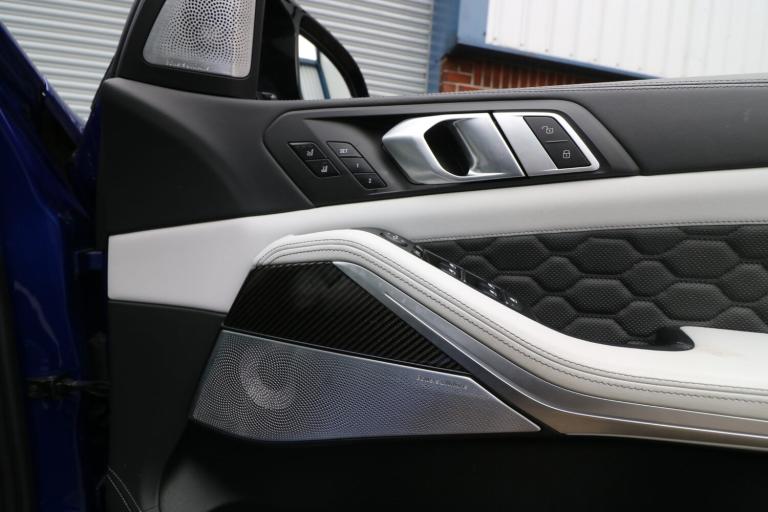 2022 (22) BMW X5 M 4.4i V8 Competition Auto xDrive Euro 6 (s/s) 5dr, 1 OWNER FROM NEW, INDIVIDUAL PAINT SAN MARINO BLUE (5K OPTION), FULLY LOADED, SOFT CLOSE DOORS, LASER LIGHTS, TOWBAR, M CARBON SIDE MIRRORS, HEADS UP DISPLAY, BOWERS & WILKINS SOUND SYSTEM, VISABILITY PACK, TECHNOLOGY PLUS PACK, MASSAGE SEATS, M BRAKES WITH BLUE CALIPERS, COMFORT PLUS PACK, SILVERSTONE/BLACK FULL MERINO LEATHER, HEATED & COOLED CUP HOLDER, FRONT & REAR HEATED SEATS, SKY LOUNGE PANORAMIC GLASS SUNROOF, BMW INDIVIDUAL LIGHTS SHADOW LINE, LUGGAGE NET, VENTILATED FRONT SEATS, CARBON FIBRE INTERIOR TRIM, FRONT MASSAGE SEATS, DRIVING ASSISTANT PROFESSIONAL, DELETION OF WIRELESS CHARGING, 360 CAMERA, 21in-22in Alloy Wheels - M Light 818 Bi-Colour with Mixed Tyres,32GB Hard Disc Drive HDD Memory,Active M Differential,Active Protection,Adaptive M Suspension Professional,Air Conditioning - Automatic with Four Zone Control,Airbags,Alarm System,Ambient, Lighting,Attentiveness Assistant, Automatic Start-Stop Button, Automatically Dimming Rear View Mirror, BMW Connected Package Professional, BMW ConnectedDrive Online Services, BMW Gesture Control, BMW Legal Emergency Call, BMW Live Cockpit Professional, BMW TeleServices, Brake Pad Wear Indicator PLEASE CALL TO ARRANGE A VIEWING