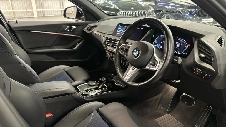 This 2023 BMW 1 Series 118i M Sport (LCP) boasts a full service history and has had only one owner, offering excellent provenance. This Euro 6 compliant model features a 1.5 litre petrol engine and is presented in the sporty M Sport trim. It comes equipped with a Technology Pack, which includes Bluetooth connectivity, a Head Up Display, automatic LED headlights, front and rear parking sensors, a rear camera, and wireless phone charging. The convenience of an electric bootlid is also a notable feature.The BMW 1 Series 118i M Sport is designed for an engaging driving experience, accelerating from 0 to 62mph in just 8.5 seconds, demonstrating its responsive performance compared to other vehicles in its class. The inclusion of Adaptive LED Headlights further enhances its capabilities, providing superior illumination. Furthermore, the generous boot space ensures practicality for everyday use and longer journeys, making this a well rounded and desirable vehicle.