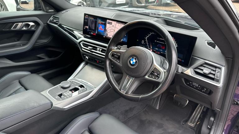 This 2023 BMW 2 Series M240i is a superb example, having had only one owner since new. This striking four wheel drive coupe is powered by a potent 3.0 litre petrol engine, meeting Euro 6 emission standards. It comes equipped with the desirable M Adaptive Suspension for enhanced driving dynamics, and the Technology Pack which includes front and rear parking sensors, a rear camera, and wireless phone charging. The Adaptive LED headlights provide excellent visibility, while the electric memory seats offer personalised comfort for every journey.Experience impressive performance with this M240i, capable of accelerating from 0 to 62 miles per hour in just 4.3 seconds, demonstrating its sporting prowess. This vehicle also offers excellent efficiency, achieving a fuel economy of 33 miles per gallon, and benefits from low CO2 emissions, making it a more environmentally conscious choice. Furthermore, its position within a low insurance group highlights its affordability for everyday use, setting it apart from many comparable vehicles.