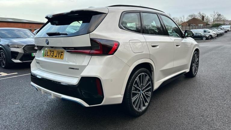 This 2023 BMW iX1 30 M Sport is a BMW manufacturer approved electric vehicle with only one owner and a full dealership service history, having last been serviced on 1st September 2025 at 11,599 miles. This four wheel drive model boasts a low mileage of just 14,030 miles for its age and comes with a 12 month warranty and a 12 month MOT provided on purchase. Notable features include striking 20 inch M Multi Spoke 869 alloy wheels and a Parking Assistant system complete with rear camera and rear sensors for effortless manoeuvring.Experience exhilarating performance with the iX1's impressive 0 to 62mph acceleration in just 5.6 seconds, a testament to its electric power. With a substantial 67 kWh battery, you can expect a maximum range of up to 272 miles from new, and charging is convenient with a full charge at home taking approximately 9 hours and 10 minutes using a 7kW charger, or a rapid 32 minutes to reach 80% charge from empty at a public charging station. This model also offers generous boot space, making it a practical choice for everyday life and longer journeys.