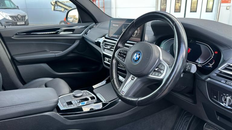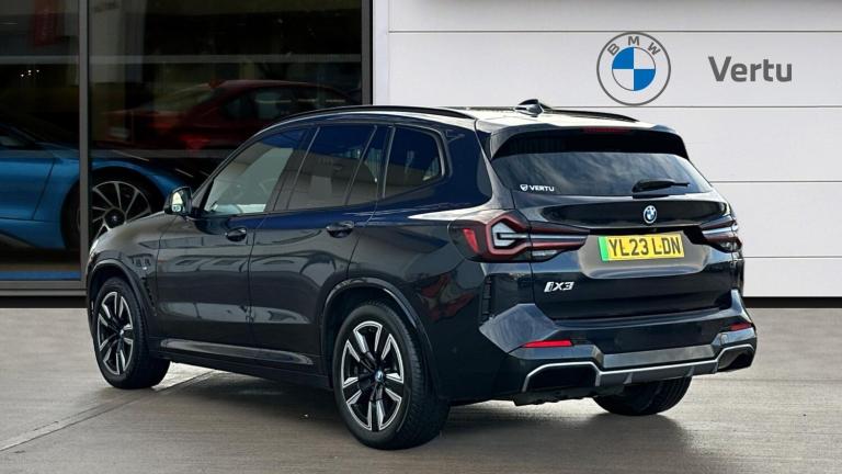 Experience cutting-edge electric performance and premium comfort with this impressive 2023 BMW iX3 M Sport, finished in striking Carbon Black and paired with a refined Black Vernasca leather interior featuring distinctive Blue stitching. With just 24,540 miles, this all-electric SUV delivers smooth, responsive driving alongside the athletic styling and dynamic presence expected from BMW’s M Sport range, making it an ideal choice for both everyday driving and longer journeys.When purchasing from Vertu BMW Exeter, you benefit from the reassurance that all our Approved Used BMW models come with 12 Months BMW Approved Warranty, 12 Months BMW Roadside Assistance, 12 Months MOT and a full service history. Every vehicle is meticulously prepared and inspected by manufacturer-trained technicians using genuine BMW parts, ensuring the highest standards of safety, performance and reliability. Choosing Vertu BMW Exeter also means expert guidance, exceptional customer care and continued support long after you drive away.To help you make a fully informed decision, simply contact our knowledgeable team and we will provide you with a personalised video presentation of the vehicle. This allows you to explore the car in detail from the comfort of your own home, while giving you the opportunity to ask any questions you may have and receive clear, honest answers tailored to your needs.This BMW iX3 M Sport boasts an excellent specification, including Heated Front Seats for added comfort in colder weather, Parking Assistant to make manoeuvring effortless in tight spaces, and BMW Laserlights which enhance visibility while adding a bold, modern look. A refined electric driving experience awaits at Vertu BMW Exeter..Climate Control, Metallic Paint, Cruise Control, Satellite Navigation, Alloy Wheels, Leather Seats, Heated Seats, DAB Radio, Bluetooth, Parking Sensors, Stop Start, Full Service History, Park Assist, Manufacturer Approved, Keyless Entry-Push Button Start, Apple-Android Play, Rear Camera& Auto Lights, Floor mats in velour, Rear wiper, Sun protection glass, Green tinted heat protection glazing glass, Heated washer jets, Rain sensor and automatic driving lights control, Electric windows with trap release and convenient opening/closing feature, Variable front intermittent wipers, ABS/EBD, DSTC-Dynamic Stability and Traction Control, Cornering brake control (CBC), Brake energy regeneration, Front and rear brake discs with interior ventilation, Electromechanical parking brake, Recuperation system, Double joint spring strut front axle, Multiple control arm rear axle, Enhanced bluetooth with wireless charging, Apple car play and Android auto, PAS, Reversing camera