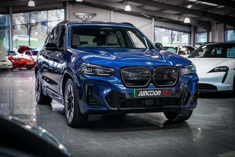 *CLICK - BUY - COLLECT* FINANCE AVAILABLE! HPI CLEAR! Junction 17 Cars now have to offer a stunning BMW IX3 80 KwH M Sport Pro Automatic 5dr.. One owner from new with BMW main dealer history present.. Finished in Phytonic Blue metallic with Oyster Vernasca leather upholstery.. Desirable specification.. Sliding panoramic glass sunroof.. Harmon/Kardon sound system.. Radar assisted cruise control, with lane keep assist.. Mirror package (anti-dazzle/folding).. 360 Surround camera park assist, and so much more.*WE WILL BEAT ANY CAR VALUATION SITE FOR YOUR PART EXCHANGE* Junction 17 Cars (Runner Up at the Motor Trader Independent Dealer Awards 2019 nominated for Car Supermarket of the Year Award) is a unique family run business with over 7 millions worth of stock currently split over our purpose-built showroom in Yaxley, Peterborough and our new showrooms in Grantham and Rugby. Our vehicles can also be reserved with a 99 refundable holding deposit to ensure that they are professionally prepared/valeted for your viewing pleasure. Competitive HP and PCP packages are available with decision/approval available within 15 minutes. We also offer comprehensive warranties over a variety of different terms as well as Williams Ceramic Coating, Flexfuel Engine Carbon Cleaning and more. **NATIONWIDE DELIVERY AVAILABLE** Payment : maximum 500 card payment balance by bank transfer The vehicle is being sold on behalf of a third party for whom we act as an agent