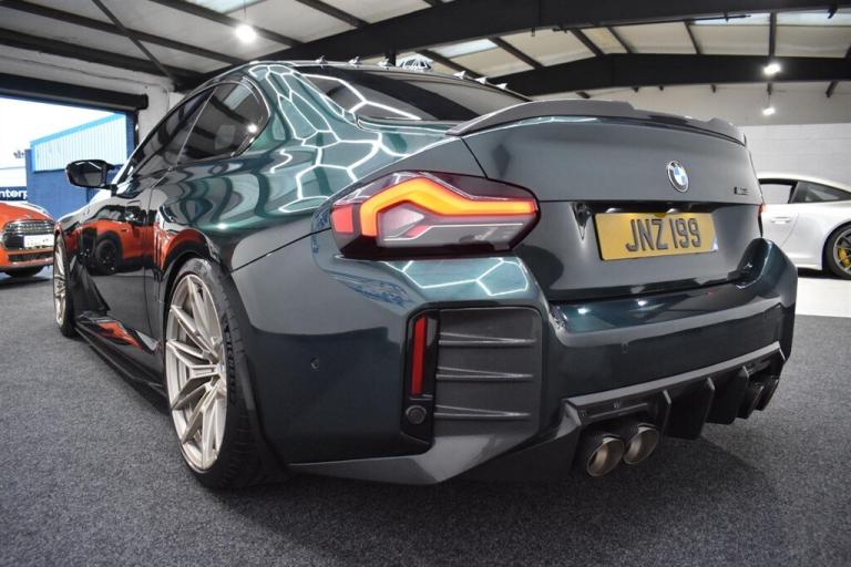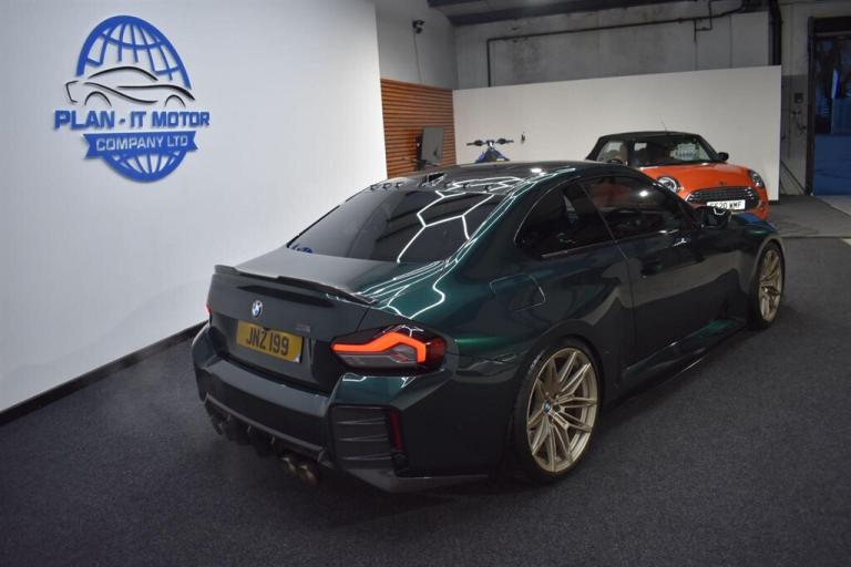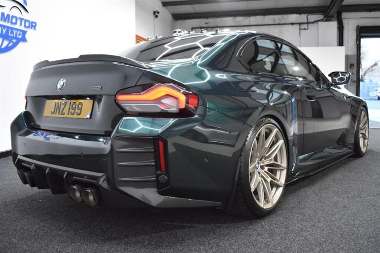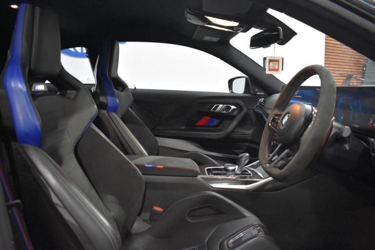 Alcantara Steering Wheel, Alcantara Centre Console, Carbon Bucket Seats, Entire Car Wrapped In PPF. 4 x Brand New Michelin Pilot Sport 4 s Finance pcp Available. Must Be Seen In Person, Looks Incredible!! This M2 Is Completely Prestine. This 2023 BMW M2 BiTurbo presents an exceptional opportunity with its remarkably low mileage of just 8368 miles. Powered by a potent 3.0L Petrol Engine and meeting Euro 6 emission standards, this performance coupé is equipped with the M Drivers Package for an enhanced driving experience. Inside, you'll find comfort and convenience with automatic three-zone air conditioning and the advanced BMW Live Cockpit Professional, featuring Bluetooth and a Head Up Display. The BMW Connected Package Professional seamlessly integrates your smartphone with Android Auto and Apple CarPlay. Parking is made effortless with the Parking Assistant, which includes a rear camera. This M2 BiTurbo stands out with several key advantages. Its impressive acceleration from 0-62mph in just 4.1 seconds demonstrates its dynamic capabilities, while a fuel economy of 29 mpg offers a respectable balance for its performance class. Furthermore, its low CO2 emissions and placement in a low insurance group highlight its efficiency and cost effectiveness compared to similar vehicles.. 12V Power Socket - Centre Console,19in Front and 20in Rear Alloy Wheels - Style 930M Black Double-Spoke with Mixed Tyres,ABS - Anti Lock Braking System,Adaptive LED Headlights,Air Conditioning - Automatic with Three-Zone,Airbags,Alarm System,Ambient Lighting,Automatically Dimming Rear View Mirror,BMW Connected Package Professional,BMW ConnectedDrive Online Services,BMW Individual Lights Shadow Line,BMW Legal Emergency Call,BMW Live Cockpit Professional,BMW Mobility System,BMW TeleServices,Bumper System - Front and Rear,Carbon Roof,Child Seat ISOFIX Attachment for the Two Outer Rear Seats,Crash Sensor,Cruise Control with Brake Function,Cupholders - Two Front Centre Console,DAB Tuner,DSC - Dynamic Stability Control with Extended Contents,Door Sill Strips,EPS - Electric Power Steering,Electric Memory Seats,Electric Windows - Front,Electromechanical Parking Brake,Extended Storage,Exterior Trim - High Gloss Shadowline,Floor Mats - Velour,Follow-Me-Home Function,Front Lumbar Support,Front Passenger Airbag Deactivation,Glove Compartment,Harman Kardon Surround Audio Sound System,Headlight Beam-Throw Control,Headlining - Anthracite,Heat Protection - Sun Protection Glazing,High-Beam Assistant,High-Gloss Shadowline with Extended Contents,Illuminated M Accents,Interior Lighting,Interior Trim - Carbon Fibre,Interior and Exterior Mirror Package,LED Rear Lights,LED Registration Plate Light,Luggage Compartment - Light,M Adaptive Suspension,M Compound Brake - Red High Gloss,M Drive,M Drive Professional,M Highlighters - Illuminated,M Leather Steering Wheel,M Seat Belts,M Sport Differential,Oil Sensor For Level and Grade,Parking Assistant,Rain Sensor,Rear Folding Headrests,Seats - Front Heated,Seats - Front M Sport,Shifting Point Display,Speed Limiter,Storage Options,Sun Protection Glazing,TPMS - Tyre Pressure Monitoring System,Through-Loading System,Welcome Light,Widescreen Multi-media Display,M Drivers Package