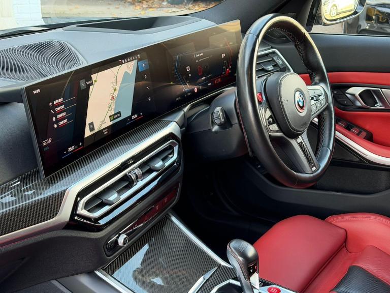 This 2023 BMW M3 BiTurbo Competition is presented with a clear vehicle history check, offering you peace of mind. This striking M3, featuring a powerful 3.0L Petrol Engine and Four Wheel Drive drivetrain, meets Euro 6 emission standards. Inside, you'll find a host of premium features designed to enhance your driving experience, including Enhanced Bluetooth and Wireless Charging, a Head Up Display, and a Wireless Charging Tray. For your listening pleasure, it boasts a Harman Kardon Surround Audio Sound System, and the Electric Memory Seats ensure ultimate comfort and convenience.The performance of this M3 Competition is truly exceptional, accelerating from 0-62mph in a remarkable 3.6 seconds. This rapid acceleration demonstrates how this vehicle outperforms many others in its class. The combination of its advanced technology, luxurious interior, and potent engine makes this BMW M3 a standout choice for any discerning driver.
