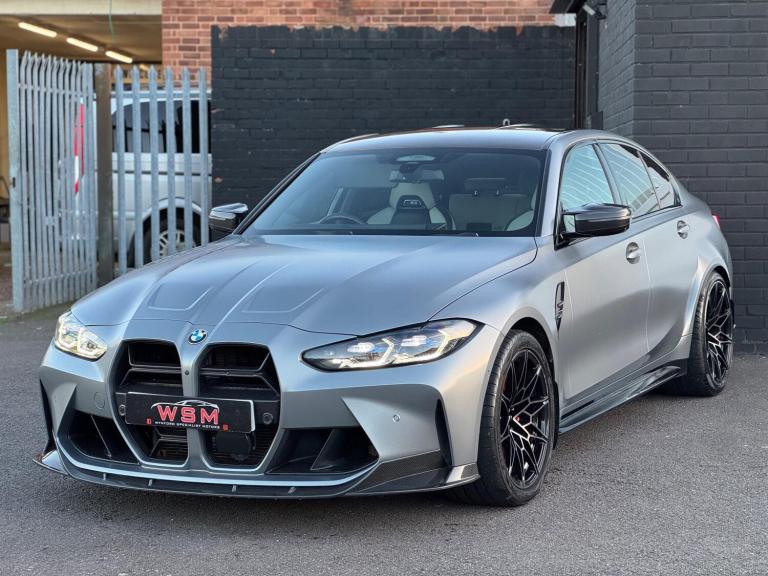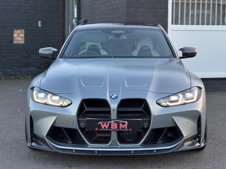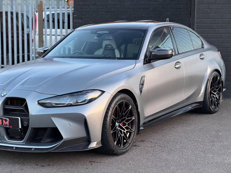 Wynford Specialist Motors Are Pleased To Offer This BMW M3 3.0 BiTurbo Competition Steptronic M xDrive Euro 6 (s/s) 4dr Finished In Frozen Grey, Full BMW Main Dealer Service History, Great Spec Which Includes M Carbon Exterior Package, Technology Plus Pack, Visibility Pack, Comfort Pack, Parking Assistant Plus, Steering Wheel - Heated, 19in Front - 20in Rear Alloy Wheels - M Double Spoke - 826 - Forged - Bicolour Black with Mixed Tyres, Drive Recorder, Full Merino Bicolour Leather - Black-Silverstone,