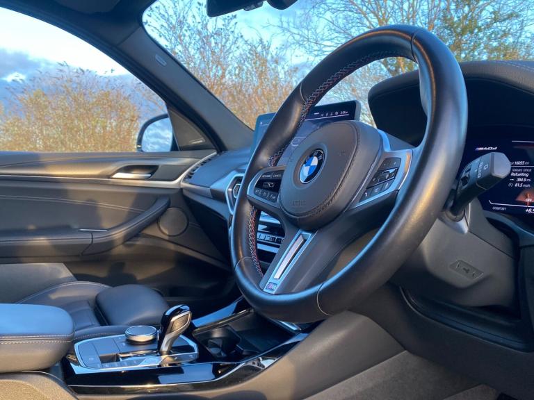 Crossroads Garage are delighted to offer another superb used vehicle; this sensational, one owner BMW X3 M40d xDrive MHT Auto which has just arrived in stock with us. COLOUR & TRIM - Presented in the most sought after colour Brooklyn Grey metallic paintwork with Black exterior body styling, this all wheel drive X3 has upgraded Bi-Colour 21"" M Double Spoke alloy wheels. The interior is finished in Black Vernasca leather upholstery with electric memory, heated front seats. SOURCE - This one owner, premium BMW SUV was purchased by us directly from it's previous keeper. SERVICING - Our example has covered just 16000 miles and is provided with a Full BMW Service History. It is of-course HPI clear and the mileage has been verified with VOSA records. PERFORMANCE - This X3 M40d looks and drives superb. Having been put through our multi-point check this car is supplied with the balance of manufacturer's warranty until October 2026. SPECIFICATION - Our well-equipped 4x4 benefits from 335 BHP and an extensive specification which includes, 8-Speed Automatic Gearbox With Paddleshift, BMW Live Professional Virtual Cockpit, BMW Technology Package, BMW Professional Centre Control Widescreen Touch Display Screen, Harman Kardon Surround Audio System, Satellite Navigation, Apple CarPlay, Head-Up Display, Wireless Phone Charging, WiFi Hotspot, Black Exterior Styling, Electric Memory Seats, Heated Front Seats, Reverse Camera With Front & Rear Parking Sensors, Adaptive LED Headlights, Shadowline Lights, Ambient Interior Lighting, M Sport Brakes With Red Calipers, Driving Experience Control Modes, Dual-Zone Climate Control, Bluetooth Phone With Audio Streaming, Cruise Control, Sun Protection Glass, Multi-Function Steering Wheel, USB-C Input, DAB Radio, Electric Folding Door Mirrors, and more besides. WHAT TO EXPECT FROM US - Fabulous finance packages and the comfort of knowing your car is being supplied by a multi award-winning dealer including Trading Standards Retailer of the Year and we have customer feedback scores to be proud of. All of our vehicles are prepared to a high standard by our team of skilled technicians and will be valeted ready for collection. We take pride in our efforts to make this the most enjoyable car-buying experience you'll ever have. Please call and speak to James, Alan, Dean or Simon who'll be able to answer any questions you have, to reserve this wonderful example today or to book a viewing. Please remember to bring a valid Full Driving Licence with you. Thank You.