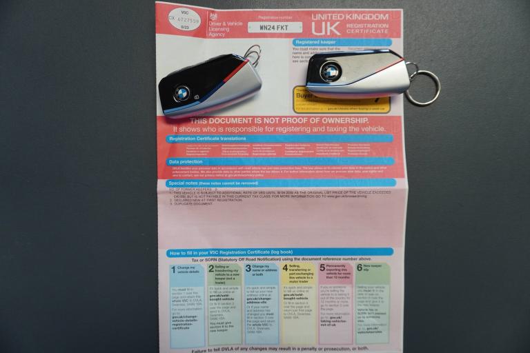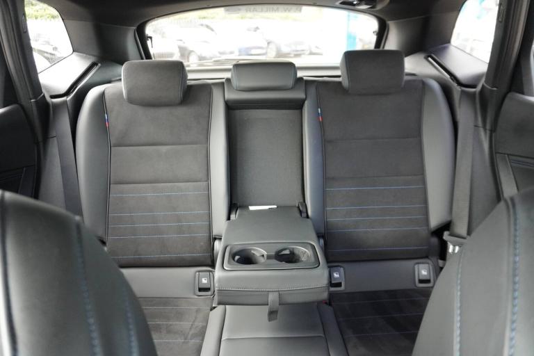 3 point seatbelts on all seats, front pyrotechnic belt tensioners, stopper and belt force limiters, rear coded belt buckles, Acoustic protection for pedestrians, Airbag - Front driver and passenger, front and rear head, front side, curtain head protection, manual deactivation of front passenger airbag possible, Anti lock braking system (ABS) with brake assist, Automatic hold function, BMW emergency call, Brake drying, Braking readiness, Child proof locking system in rear door, Cornering brake control, Crash Sensor - activates hazard/interior lighting + unlocks doors, DSC - Dynamic Stability Control, Dynamic brake control, Dynamic Traction Control - DTC, Electromechanical parking brake, Energy recovery system, Front disc brakes, Integrated braking system, PC iBrake PostCrash approach control warning with light braking function, Rear disc brakes, Tyre pressure monitoring system, Warning triangle and first aid kit, Active Guard, Attentiveness assist, Automatic powered tailgate, Automatic start/stop function, BMW Online services, BMW Operating system 9 with BMW Maps, real-time traffic information, in-car experiences, remote services and smartphone integration, BMW Teleservices, Brake pad wear indicator in front and rear, Condition based service, ConnectedDrive Services, Drive off assistant, Flat air vents on instrument panel in high gloss black, adjustable slats with elements in pearl chrome, iDrive controller, Instrument cluster with speedometer with miles per hour read out, tachometer and fuel gauge, Language version English, On board computer - average speed+fuel consumption, service interval, clock/date, odometer/trip meter, outside temperature display and ice warning, Parking assistant with active park distance control, reversing assistant, lateral parking aid and rear view camera, Servotronic variable electric power steering (EPS), Speed limiter, Widescreen display, Wireless charging, Air inlet middle part on front apron in lines specific design with trim strip in satinised aluminium, Automatic headlights, Black rear bumper trim strip, BMW emblem, engine compartment lid and tailgate, Body colour roof mouldings, Body coloured door mirror caps, Contoured rear roof spoiler in vehicle colour with side aeroblades in black high-gloss, Courtesy lights in exterior mirror with BMW logo projection, Dynamic brake lights, Electric adjustable heated door mirrors, Electric folding door mirrors, Electric windows - front and rear, with open/close fingertip control,