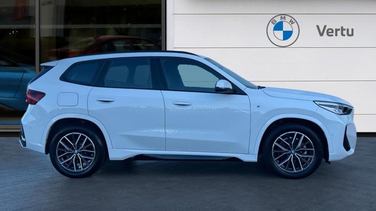 Presenting a superb 2022 BMW iX1 eDrive20 M Sport finished in timeless Alpine White, paired with the stylish M Alcantara Veganza combination seats in Black. With just 6,996 miles covered, this dynamic all-electric SUV offers an impressive blend of efficiency, refinement and M Sport athleticism, making it an ideal choice for drivers who value performance and sustainability in equal measure. Choosing your next vehicle from Vertu BMW Exeter brings complete reassurance, as every Approved Used BMW includes 12 Months BMW Approved Warranty, 12 Months BMW Roadside Assistance, a 12 Months MOT and a full service history. Each vehicle undergoes meticulous preparation by manufacturer-trained technicians who work to BMW’s exacting standards, ensuring quality, reliability and confidence from the moment you drive away. The team at Vertu BMW Exeter is dedicated to offering an exceptional customer experience, and upon request we will gladly provide a personalised video presentation tailored specifically to this iX1. This allows you to explore the car in greater detail from the comfort of your home, and our experts will answer any questions you may have regarding features, charging, performance or ownership. This iX1 eDrive20 M Sport is equipped with a range of sought-after features designed to elevate every journey. Heated front seats add comfort during colder months, while the Parking Assistant system provides effortless manoeuvring in tighter spaces. The electric bootlid enhances practicality by allowing easy access to the luggage area, especially useful when your hands are full. Combining cutting-edge electric innovation with M Sport design and everyday usability, this BMW iX1 eDrive20 is an exceptional opportunity to experience the future of driving..Climate Control, Cruise Control, Satellite Navigation, Alloy Wheels, Heated Seats, DAB Radio, Bluetooth, Parking Sensors, Stop Start, Full Service History, Park Assist, Manufacturer Approved, Keyless Entry-Push Button Start, Apple-Android Play, Rear Camera, Electric Opening Tailgate, Auto Lights& Electric Folding Mirrors, Anthracite Velour front and rear floormats, Rear wiper, Heated rear window, Rain sensor including auto headlights activation, Electric windows - front and rear, with open/close fingertip control, anti-trap facility and comfort closing, Windscreen washer nozzle for rear view camera, Windscreen wipers front with heated washer nozzles, ABS/EBD, Automatic Stability Control (ASC), Cornering brake control (CBC), Dynamic brake control, Electromechanical parking brake, Integrated brake system, Energy recovery system, Braking readiness, Dynamic stability control + (DSC+), Dry braking, PC iBrake PostCrash approach control warning with light braking function