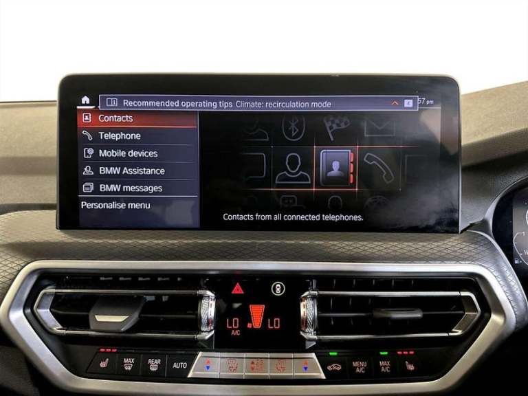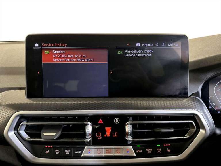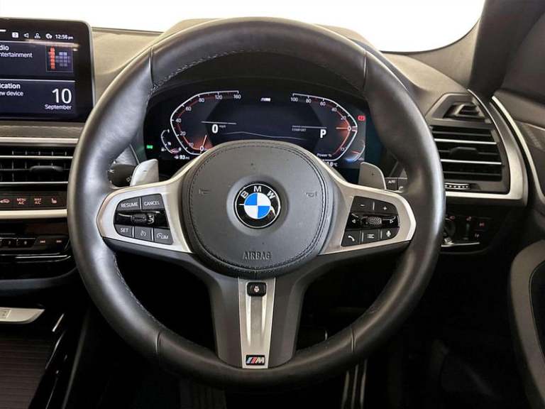 This 2024 BMW X3 20i M Sport is a superb example, having had only one owner from new. Finished in the stylish M Sport trim, this Four Wheel Drive model boasts a 2.0 litre Petrol Hybrid engine and meets Euro 6 emissions standards. It comes equipped with the desirable Comfort Pack, which includes Keyless Entry and a Heated Steering Wheel, alongside the M Sport Pro Pack. For enhanced convenience and safety, it features a Parking Assistant with front and rear sensors and a rear camera, as well as Adaptive LED Headlights.For peace of mind this vehicle has only had 1 registered owner and has completed a multi point AA inspection.Competitive finance is also available.We are open 7 days a week and have more than 1500 cars to choose from.All our Euro 4 Petrol and Euro 6 Diesel vehicles meet the ULEZ standard.Vehicle specification can be found below. From time to time vehicles have manufacturer recalls notified. Please read our recall policy on our website for further information. 2x USB Type C in Front Centre Console, 2x USB Type C in Rear Centre Console, BMW Connected Package Professional, BMW ConnectedDrive Online Services, BMW Emergency Call, BMW Live Cockpit Professional, BMW TeleServices, DAB Tuner, Power Socket 12v, Smartphone Integration, Stereo Speaker System, Widescreen Display, Attentiveness Assistant, BMW iDrive, Brake Pad Wear Indicator, Condition Based Service, Cruise Control, Driving Experience Switch, Front and Rear Parking Sensors, Language Version English, Parking Assistant, Performance Control, Reversing Camera, Tyre Pressure Sensors, 19in Alloy Wheels - 887M M Y-Spoke - Midnight Grey, Acoustic Glass, Bumper System, Door Handles - Body Colour, Electric Windows, Exhaust Tailpipes - Free-Form Chrome Finishers - Left and Right, Exterior Mirrors - Integrated Direction Indicators, Exterior Trim - High Gloss Shadowline, Folding Side Mirrors with Auto-Dimming, Heat Protection - Sun Protection Glazing, Interior and Exterior Mirror Package, M Sport Package, Mirror Caps - Body Colour, Roof Rails - High-Gloss Shadowline, Tyre Repair Kit, Windscreen Washer Jets - Heated, X3 on Tailgate, M Sport Brakes with Blue Calipers, Sun Protection Glass, Follow Me Home Headlight Function, Headlight Beam-Throw Control, Headlights - Adaptive LED, High Level Third Brake Light Using LED Technology, High-Beam Assistant, Air Conditioning - Automatic with Three-Zone, Ambient Lighting, Armrest - Centre Console with Storage Compartment, Armrest - Rear Centre with Two