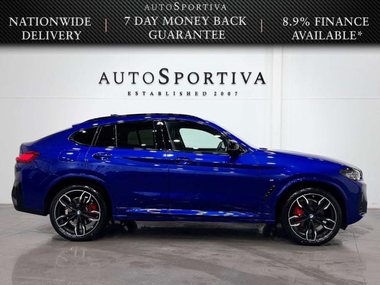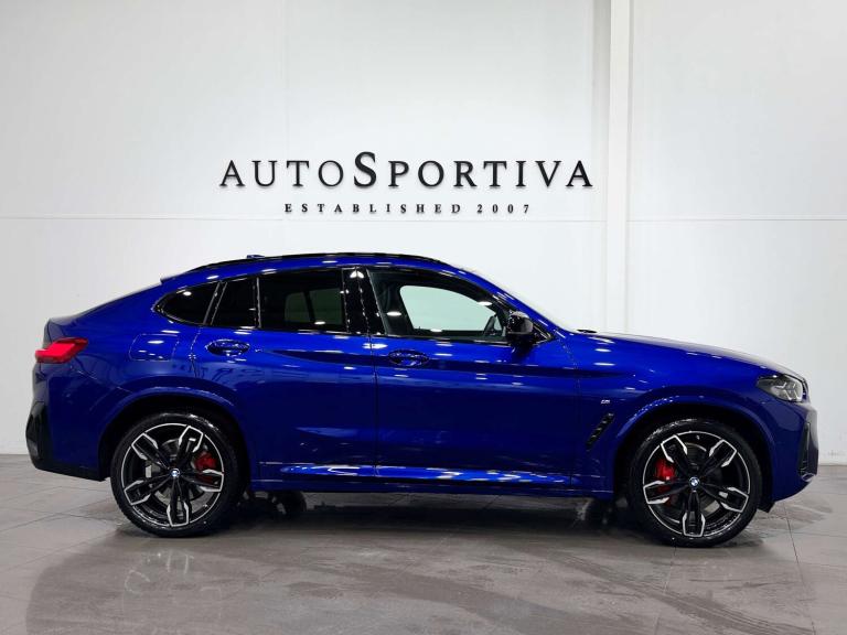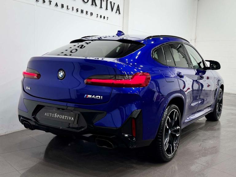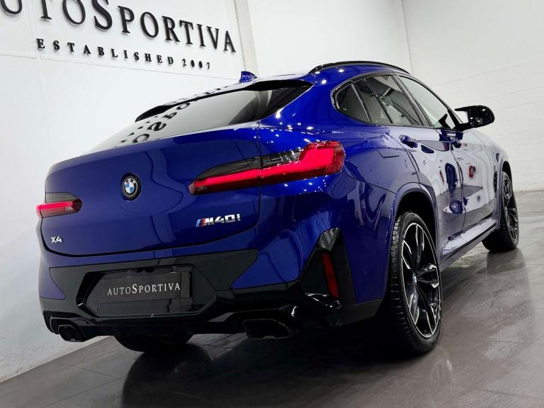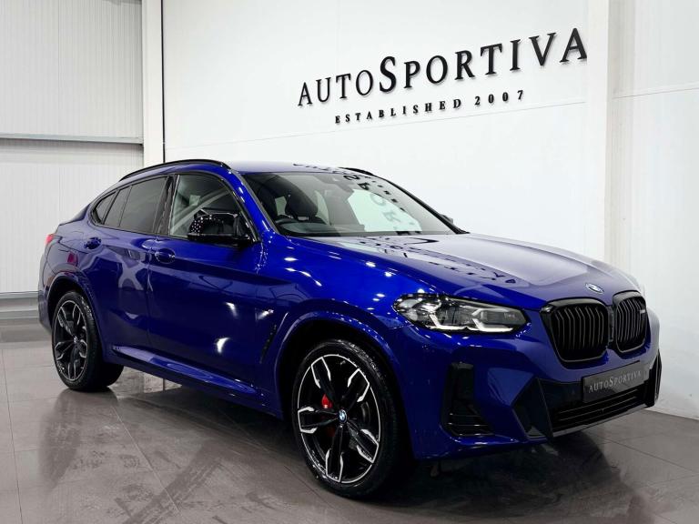 Introducing the stunning BMW X4 M40i 3.0 MHEV 4WD, a true masterpiece on wheels. With only 7,351 miles on the clock and 1 owner, this beauty is practically brand new.Finished in Special Individual Paint Colour called San Marino Blue exterior, this BMW X4 is sure to turn heads wherever you go. But it's not just about looks as this car is packed with extras to enhance your driving experience. From the Technology Package to the Harman Kardon Surround Audio Sound System, every detail has been carefully considered.Step inside and you'll be greeted by the luxurious Vernasca Leather interior in Black with Blue Stitching, complemented by M Interior Trim Finishers in Carbon Fibre. The M Sport Brakes with Red Calipers not only look great but also provide exceptional stopping power.But that's not all - this BMW X4 also comes equipped with Parking Assistant Plus, Roof Rails in Shadowline High-Gloss Black, Enhanced Bluetooth and Wireless Charging, and a WiFi Hotspot for ultimate convenience.Finance from 8.9% APR Representative and Nationwide Delivery available. All of our vehicles are Supplied with a minimum 1/4 a tank of fuel, a 7 Day Money Back Guarantee*, a Full Multi-Point Mechanical inspection, a 6 Month Warranty, a Professional Valet and all vehicles come HPI clear so you can Buy with Confidence.*PLEASE UNDERSTAND every effort has been made to ensure the accuracy of the information above, however, errors may occur. Please do not rely entirely on this information and check with your sales executive about items that may affect your decision to purchase. *Our 7 day money back guarantee is available on selected retail vehicles, please confirm with your sales advisor. *A £299 Admin fee applies to third party external finance companies being used. All vehicle video tours are available upon request. Appointment basis.