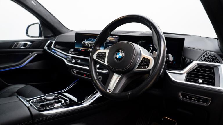 ..[Optional Extra] Brooklyn Grey Metallic, [Optional Extra] M Sport Pro Package, [Optional Extra] Sky Lounge Panoramic Sunroof, [Optional Extra] Sun Protection Glass, [Optional Extra] BMW Individual Piano Black Trim, Attentiveness assist,Automatic start/stop function,Automatic tailgate operation,BMW ConnectedDrive online services,BMW Drive recorder,BMW gesture control,BMW Teleservices,Brake pad wear indicator in front and rear,Condition based service,Electric power steering with Servotronic steering optimised at all speed ranges,Integrated owner's handbook,Live Cockpit Professional with head up display including 12.3'' instrument cluster and 14.9'' central display,Parking assistant pro including reversing assistant, PDC, lateral parking aid, reversing assist camera, parking drive off monitoring,Speed limiter,48V Mild hybrid technology,8 speed automatic with steptronic transmission including automatic hold function and gearshift paddles on the steering wheel,Drive experience switch with comfort mode + ECO PRO + sport mode,Permanent all wheel drive,DAB radio,Personal eSim,Acoustic glazing,Adaptive air flap control bars in high gloss black,Air breather and door claddings in high gloss chrome,Aluminium roof rails,Aluminium Running Board,Body coloured wheel arches,Dynamic brake lights with LED technology,Electrically adjustable and heated aspheric folding side mirrors with auto dimming, electric fold in function, automatic parking function,Exterior and central air inlets in front bumper painted pearl chrome,Follow me home headlight function,Frameless interior mirror,Front and rear electric windows,Front ornamental grille struts in chrome high gloss,Heated windscreen washer nozzles,High beam assist,High gloss black shadowline trim in side/window frame, window recess cover, window guide, B and C pillar, mirror triangle, mirror base, mirror frame,Integrated turn indicators,Kidney grille iconic glow,LED daytime running lights,LED rear lights,LED third brake light in rear spoiler,One piece front ornamental grille frame in pearl gloss chrome,Rain sensor with automatic headlight activation and windscreen wiper control,Rear side wing doors,Side window graphic in satinated aluminium,Sump guard front and rear painted in silver,Trailer stabilisation logic,12V - Power sockets with 2x centre console and 1x luggage compartment,2 seat bench in 3rd row,3 seat bench in 2nd row,40:20:40 split folding rear seats with backrest,Additional storage compartments,BMW front and