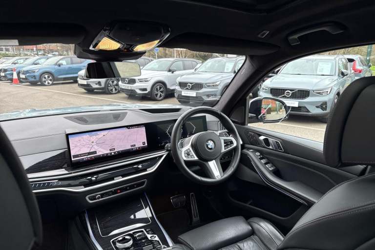 **You can rest assured with Harwoods Assured ** This car comes with Manfacturer warranty until June 2027, a thorough history check, comprehensive service history, and, in addition to that, the vehicle has been prepared by our manufacturer trained technicians. HARWOODS VOLVO CRAWLEY are delighted to offer this BMW X7 3.0 40i MHT M Sport SUV 5dr Petrol Hybrid Auto xDrive Euro 6 (s/s) (381 ps)FULL BMW SERVICE HISTORY, 2 KEYS, ONE OWNER FROM NEW, ADDITIONAL SPECIFICATION INCLUDES; Iconic Glow Crystal Headlights, Headlining in Anthracite, Travel & Comfort System, Panorama glass roof Sky Lounge, Glass application 'CraftedClarity' for interior elements, Sun protection glazing, Ambient Air Package, Automatic air conditioning with 5-zone control, BMW Individual Black Extended Merino, Comfort pack, Massage function, front, Rear Side Window Blinds, Seat ventilation**buy with confidence - We are proud to be part of the Harwoods group, a family run business established in 1931. With 17 retailers within our group, we have access to over 1000 vehicles. So, if this isn't the car for you, please contact us and we will find the right one for you** If this isn't the right car for you our wider selection of stock has spec to include Sunroof, Leather, Heated Seats, Towbar, 360-degree camera, Bowers Audio, Panoramic Sun Roof, vehicles with the Ultimate Spec, Tow Bar, other colour options including Black, Blue, Silver, White, Red & Grey, & Euro 6 ULEZ compliant drive trains.