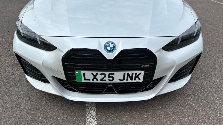 This 2025 BMW i4 M50 presents an exceptional ownership proposition with its incredibly low mileage of just 4355 miles, having had only one owner since new. This electric, four wheel drive saloon boasts a substantial 84 kWh battery, offering a maximum range of 316 miles when new. Its provenance is further assured with a full dealership service history, most recently serviced on 27th May 2025 at 11 miles. Notable features include Adaptive LED Headlights, a Technology Pack with Head Up Display and a 360 Degree Camera, and Parking Assistant Plus for effortless manoeuvring. The Comfort Pack adds keyless entry, and the High Beam Assistant ensures optimal visibility.The BMW i4 M50 stands out with its impressive performance, accelerating from 0 to 62mph in a remarkable 3.9 seconds, a speed that places it ahead of many comparable vehicles. This electric vehicle also offers a generous boot space, making it practical for everyday use and longer journeys. Charging is convenient, with a full charge at home taking approximately 12 hours and 30 minutes using a 7kW charger, while rapid public charging can replenish the battery from empty to 80% in as little as 34 minutes.