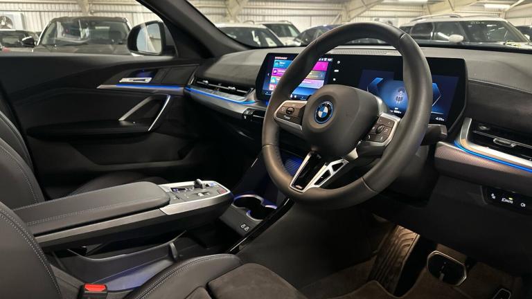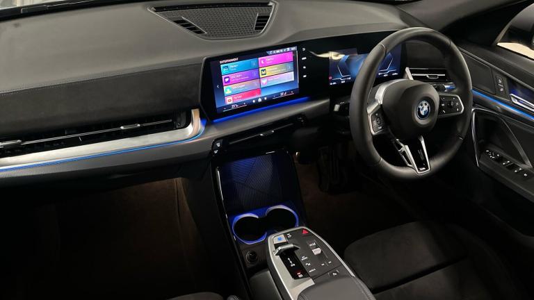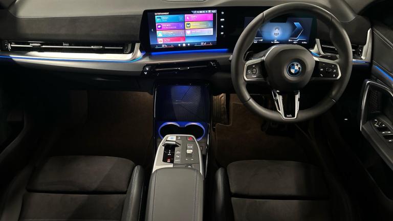 This 2025 BMW iX2 20 M Sport is a superb example, having had only one owner from new and boasting a full service history. As an all electric vehicle, it offers a compelling blend of performance and efficiency, with a total battery capacity of 67 kWh providing a maximum range of 283 miles. Charging is convenient, taking approximately 9 hours and 10 minutes at home using a 7kW charger, while rapid public charging can replenish the battery from empty to 80% in just 33 minutes. This M Sport trim level comes equipped with advanced driver aids, including the Driving Assistant with Blind Spot Assistance and the Parking Assistant featuring a rear camera, alongside a Personal eSim for enhanced connectivity.The BMW iX2 20 M Sport stands out with its generous boot space, offering ample room for all your needs. Its electric powertrain ensures a smooth and quiet driving experience, setting it apart from conventional petrol or diesel alternatives. The inclusion of features like Blind Spot Assistance and a rear camera significantly enhances safety and ease of use, making every journey more secure and less stressful. This combination of advanced technology, practical design, and impressive electric range makes the iX2 a truly desirable choice for those seeking a modern and capable vehicle.