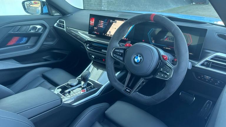 This exceptional BMW M2, finished in striking Zandvoort Blue, represents the purest expression of modern BMW M performance, combining compact proportions with serious motorsport-derived engineering.Under the bonnet sits BMW M's formidable 3.0-litre M TwinPower Turbo inline six-cylinder engine (S58), producing up to 460 hp (453 bhp) and 550 Nm of torque. Power delivery is immediate and relentless, enabling the M2 to accelerate from 0–62 mph in as little as 4.1 seconds, with a standard electronically limited top speed of 155 mph. Rear-wheel drive ensures a traditional, engaging driving experience, while the Active M Differential continuously optimises traction for maximum performance when accelerating out of corners.The chassis has been extensively developed by BMW M, featuring a wide-track stance, near-perfect 50:50 weight distribution, and Adaptive M suspension with model-specific tuning to deliver outstanding agility, precision, and stability at speed. High-performance M compound brakes provide powerful, consistent stopping performance, while the rigid body structure and precise steering setup ensure confidence and control whether on fast roads or challenging B-roads.Finished in the iconic Zandvoort Blue, the M2's muscular exterior design is matched by a focused, driver-centric interior with M Sport seats, premium materials, and intuitive BMW technology, delivering comfort without diluting its performance credentials.Supplied as a BMW Approved Used vehicle, this M2 has passed a comprehensive multi-point inspection and is offered with BMW warranty, roadside assistance, and full service history, ensuring total peace of mind.For drivers seeking an authentic M car with uncompromising performance, exceptional balance, and unmistakable road presence, this BMW M2 stands apart..Black velour front and rear floor mats, Rain sensor, Variable front intermittent wipers, Sun protection glass, Heat protection, sun protection glazing, Front electric windows, ABS/EBD, Automatic Stability Control (ASC), DSC - Dynamic Stability Control, Cornering brake control (CBC), Dynamic brake control, Electromechanical parking brake, Dry braking, PC iBrake (post crash approach control warning with light braking function), M Drive Professional including track mode, laptimer, traction control & Drift analyser, M Adaptive suspension, Storage for wireless charging, PAS, Engine start button, Driver attention warning, Active Guard, Drive off assistant, Flat tyre monitor, Start/stop system, Configurable dashboard display, Travel data recorder, Voice control for audio, climate, telephone, navigation, Check control system, Trip computer, Service interval indicator, On board diagnostics, BMW teleservices, Oil sensor for level and grade