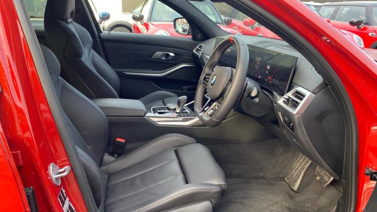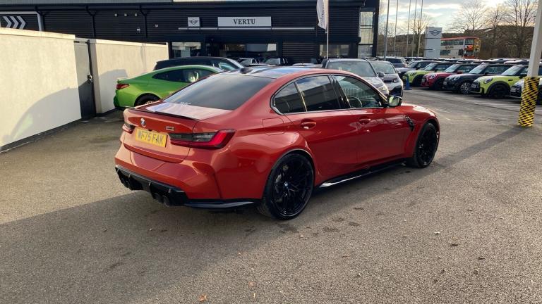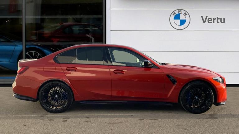 Unleash pure performance and unmistakable presence with this breathtaking BMW M3 Competition Saloon, a true icon engineered for drivers who demand power, precision and luxury in equal measure.Finished in stunning Sakhir Orange III Metallic, this M3 commands attention from every angle, perfectly complemented by the aggressive stance of its 19/20 inch Alloy Wheels. Inside, the cabin blends motorsport heritage with modern refinement, featuring Perforated Veganza Black Seats and striking Carbon Fibre Interior Trim, creating a focused yet luxurious driving environment.M Adaptive Suspension delivers exceptional control and responsiveness, automatically adjusting to suit both spirited driving and everyday comfort. The Technology Pack enhances connectivity and intuitive controls, while Cruise Control makes longer journeys effortless. Comfort Access and an Electric Bootlid add everyday convenience, ensuring this high-performance saloon is just as practical as it is thrilling.Front Heated Seats, Electric Memory Seats and Front Lumbar Support provide outstanding comfort and support, perfect for both daily driving and extended journeys. Sun Protection Glass adds privacy and helps maintain a comfortable cabin temperature.Advanced driver assistance systems elevate confidence behind the wheel. Driving Assistant supports safer motoring, while Parking Assistant takes the stress out of tight spaces. Adaptive LED Headlights and High Beam Assistant deliver exceptional visibility in all conditions, enhancing safety and night-time driving.The Harman Kardon Surround Sound system completes the experience, providing powerful, crystal-clear audio that perfectly complements the M3's exhilarating character.Buying from Vertu BMW Bridgwater means complete peace of mind. As an approved BMW retailer, every vehicle is meticulously prepared by BMW-trained technicians. You'll benefit from expert product knowledge, tailored finance solutions, competitive part exchange offers and a professional, customer-focused buying experience from start to finish..Floor mats in velour, Electric front and rear windows with one touch/convenient open/close function, Heated rear window with automatic switch off, Acoustic glazing, Heat protection, sun protection glazing, Heated washer jets, ABS/EBD, Automatic Stability Control (ASC), Cornering brake control (CBC), Dynamic brake control, Electromechanical parking brake, Dynamic Traction Control - DTC, Hill start assist, Dynamic Stability Control with M Dynamic mode, Brake energy regeneration, Brake fade compensation, Dry braking, Compound structure brake discs, Electronic differential lock control (EDLC), Adaptive M Sport suspension, M Drive Professional including track mode, laptimer, traction control & Drift analyser, Double joint spring strut front axle, Bluetooth functionality with Apple CarPlay/Android Auto, Speed limiter, Active guard plus, M drive buttons, Variable sport steering, Automatic start/stop system, Pull away assistant, Driving experience switch