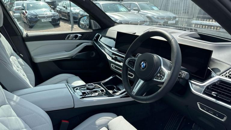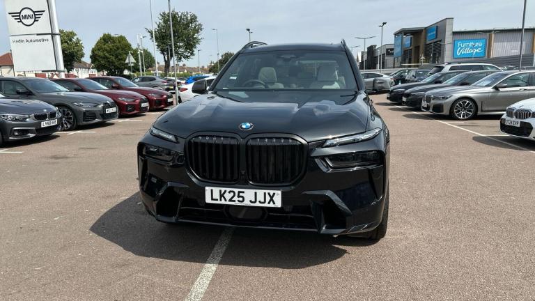 This 2025 BMW X7 40d M Sport presents an exceptional ownership proposition, having been driven only 6961 miles by its sole owner. This impressive example of the X7, a large luxury SUV, is equipped with a powerful 3.0L Diesel Hybrid engine and a Four Wheel Drive drivetrain, ensuring capable performance in all conditions. Its Euro 6 emission class reflects modern environmental standards. The M Sport trim enhances its sporty appeal, complemented by M Carbon Side Mirror Caps. Inside, the Comfort Pack adds heated seats and a heated steering wheel for enhanced driver and passenger comfort, while the Leather Dashboard provides a premium feel.The X7 40d M Sport offers a compelling blend of performance and practicality. Its acceleration from 0 to 62mph in just 5.9 seconds demonstrates its dynamic capabilities, a figure that sets it apart from many vehicles in its class. The inclusion of Driving Assistant Professional, featuring Blind Spot Assistance and Adaptive Cruise Control, contributes to a safer and more relaxed driving experience. With seven seats and generous boot space, this SUV is perfectly suited for families and those requiring ample room for luggage or cargo. Furthermore, its substantial towing weight of 2700 kg makes it a versatile choice for those needing to tow trailers or caravans. The Executive Drive Suspension ensures a smooth and refined ride.9.9% APR Subject to status** This vehicle will come with a minimum of 1 year warranty. One of our Sales Experts will be happy to send you a personalised video upon request. This will enable you to see the car in more detail. We hope that you choose us to make purchasing your next car an enjoyable non-stressful experience. We have a great range of financing options and we also offer a protection programme to protect your car. Ask about our F1 Ceramic Williams coating, Asset Protection, Tyre and Alloy Insurance, dent/scratch/scuff protection and extended Warranty ranging from 1 to 3 years. Finance is subject to status, terms and conditions apply.