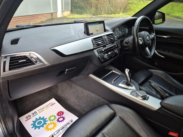 READ HERE --- This ABSOLUTELY STUNNING, vehicle features an impressive array of exterior enhancements, including 19-inch diamond-cut alloy wheels, a gloss black front bumper splitter, gloss rear diffuser, gloss side skirts, headlamp brows, M3-style mirror caps, gloss black grille, carbon badges, privacy glass, and distinctive blue V-braces. Inside the car has full charcoal leather seats with blue stitching and aluminium dash inlays, pro navigation touchscreen, Apple CarPlay, LED Headlamps, front and rear parking sensors, speed limiter, DAB Radio, dual zone climate control, push button start, automatic lights, automatic wipers, Sport & Eco driving modes, driver's arm rest and M-Sport aluminium entry trims. It is evident that the previous owner loved and maintained this vehicle with great care. The service history is exemplary, featuring six documented services at 11, 19, 27, 30, 37, and 41k miles, and a valid MOT until December 2026. Look no further, you've just found the nicest BMW 1-Series M-Sport! To schedule a viewing, please call us at 01256 207949. Kindly note that viewings are by appointment only, as some vehicles may not be on-site. WARRANTY 12 months Policy for just £359 --- The warranty includes a generous claim limit up to £5000 per claim, ensuring maximum protection. Your vehicle can be repaired by most VAT-registered repairers across the UK, providing easy access to trusted professionals. Don't go unprotected; make sure you secure your Platinum Warranty Wise Warranty at this great price and drive with confidence. FINANCING YOUR NEW PURCHASE We offer a wide range of lenders who provide flexible finance packages tailored to suit all credit scores, so why not visit our website, explore our finance calculator, and submit your direct application with ease.