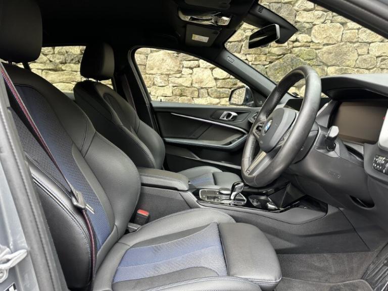 Here at Lloyd Motor Group BMW South Lakes we are proud to offer this stunning example of the BMW 1 SERIES 118i M Sport 5dr finished in the fantastic Skyscraper Grey Metallic paint with complimenting Black Trigon Cloth Sensatec upholstery. During the preparation process we have recently serviced this 1 Series! This BMW 118i M Sport delivers an exhilarating blend of athleticism and innovation, brought to life in the desirable Skyscraper Grey Metallic with bold 18'' 554M V-spoke style Orbit Grey alloys and the additional Sun Protection Glass. Inside, the cabin is defined by a refined Black Trigon Cloth Sensatec upholstery, complemented by the elegant glow of the Illuminated Boston Interior Trim, creating a space that is both sporty and sophisticated. Ensuring premium comfort is the Front Heated Sport Seats, while Automatic Air Conditioning keeps an optimal cabin, all year round. Parking is effortless thanks to Front and Rear Parking Sensors, Cruise Control takes the stress out of long journeys and Live Cockpit Professional, displayed on a stunning digital drivers display, seamlessly integrates navigation, vehicle information and entertainment for an intuitive driving experience. This BMW 118i M Sport is the ideal choice for drivers who demand practicality, luxury and cutting-edge technology in one compelling package. Lloyd BMW South Lakes invites you to experience this example of BMW innovation and style first-hand through a test drive.